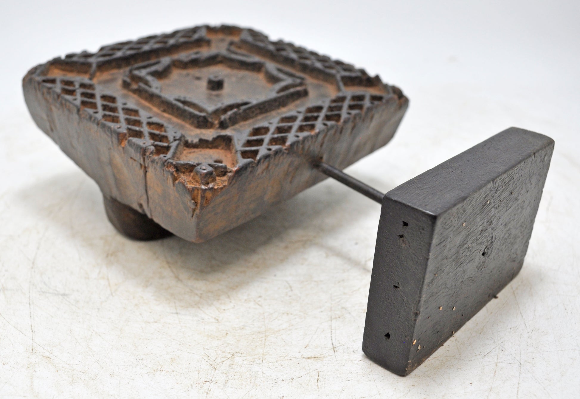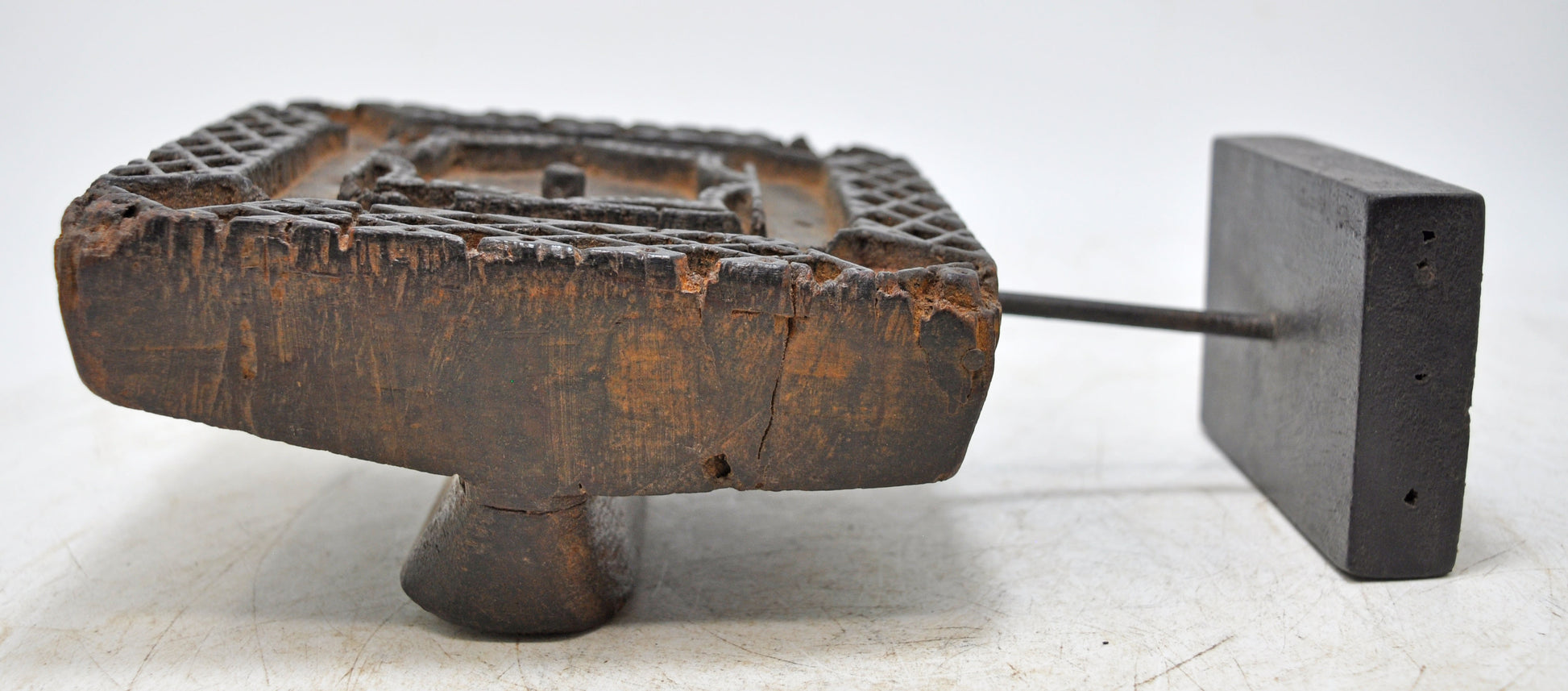 Antique Wooden Textile Printing Block on Stand Original Old Hand Carved