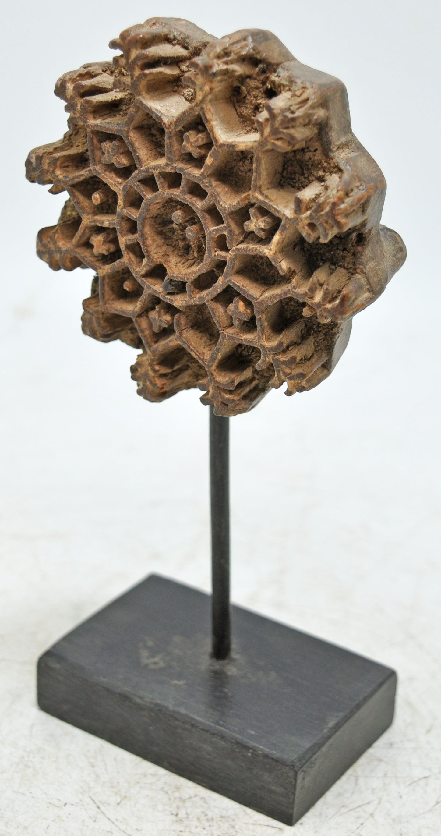 Antique Wooden Textile Printing Block on Stand Original Old Hand Carved