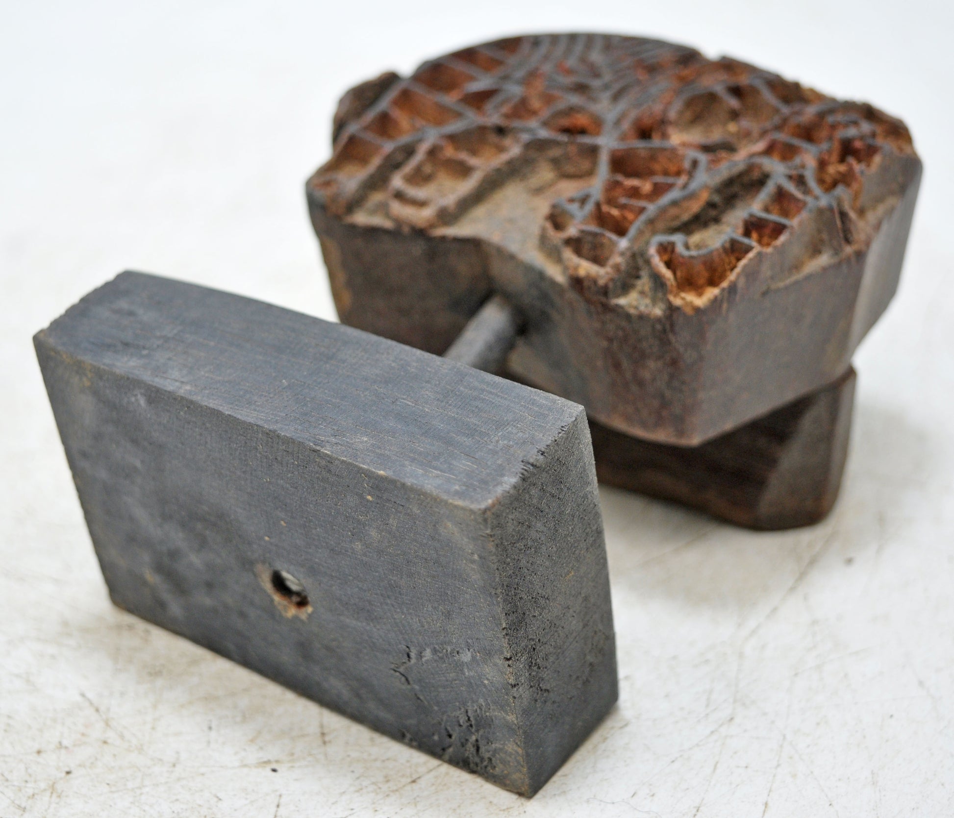 Antique Wooden Textile Printing Block on Stand Original Old Hand Carved