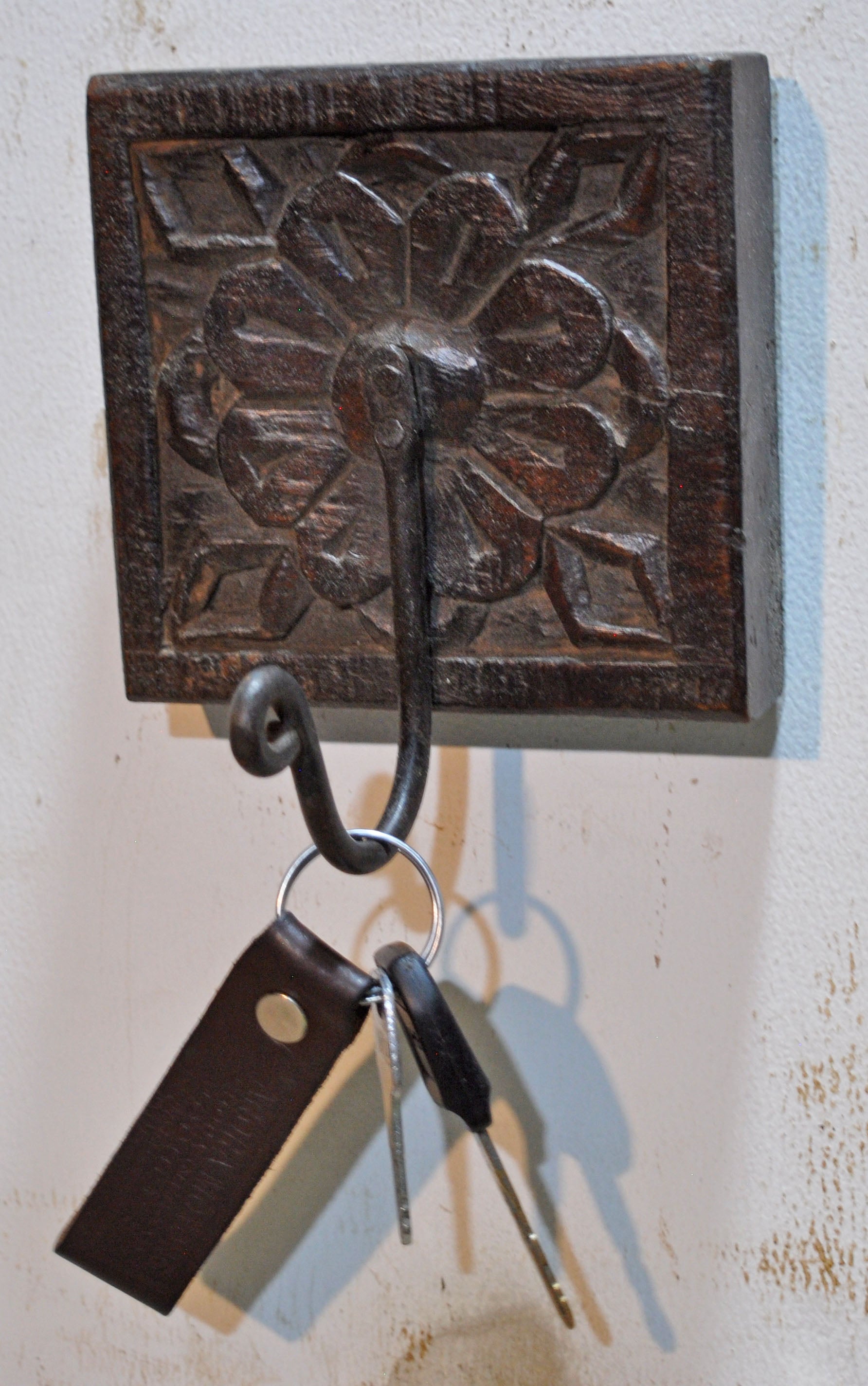 Antique Wooden Wall Décor 1 Hook Hanger Original Old Hand Carved