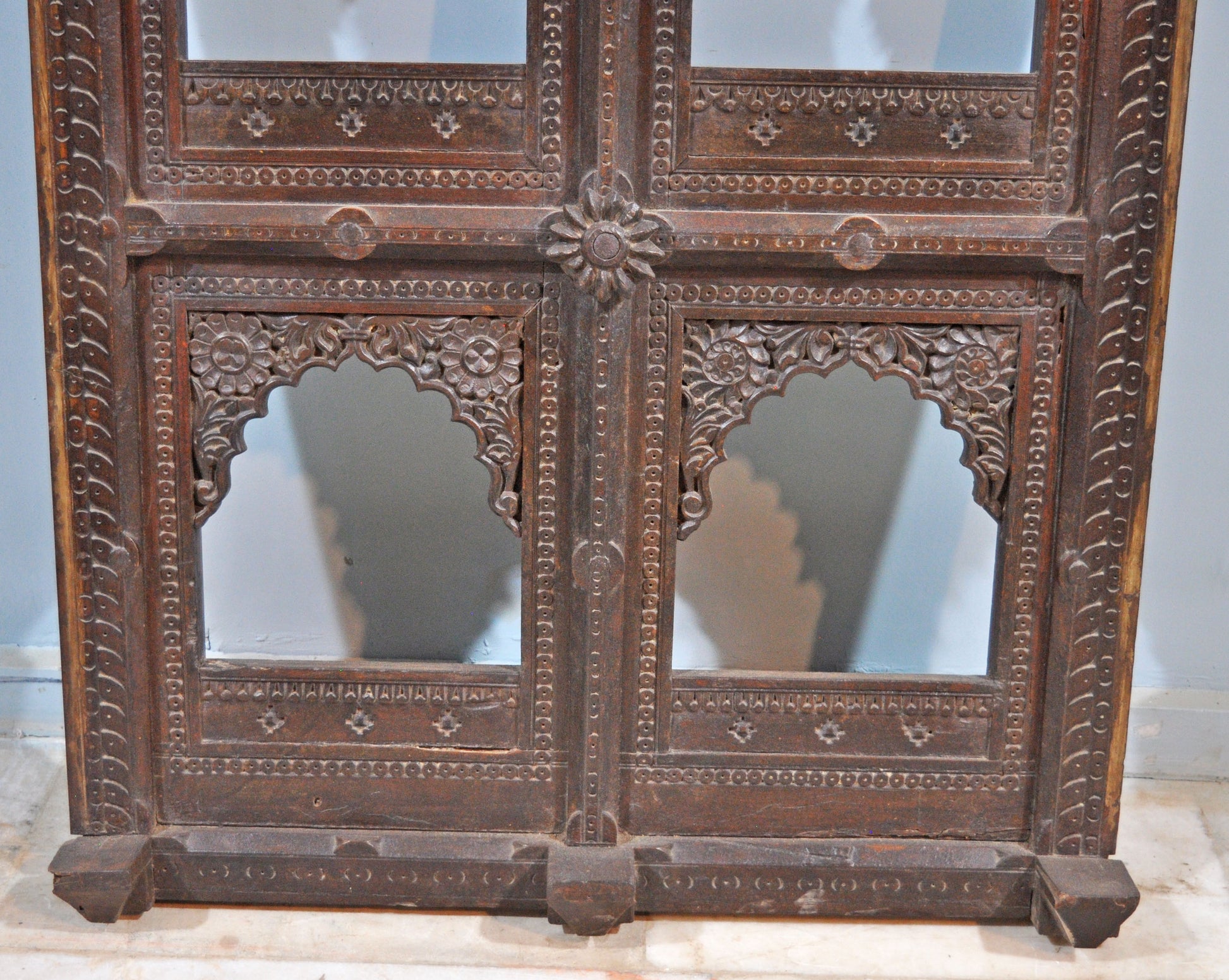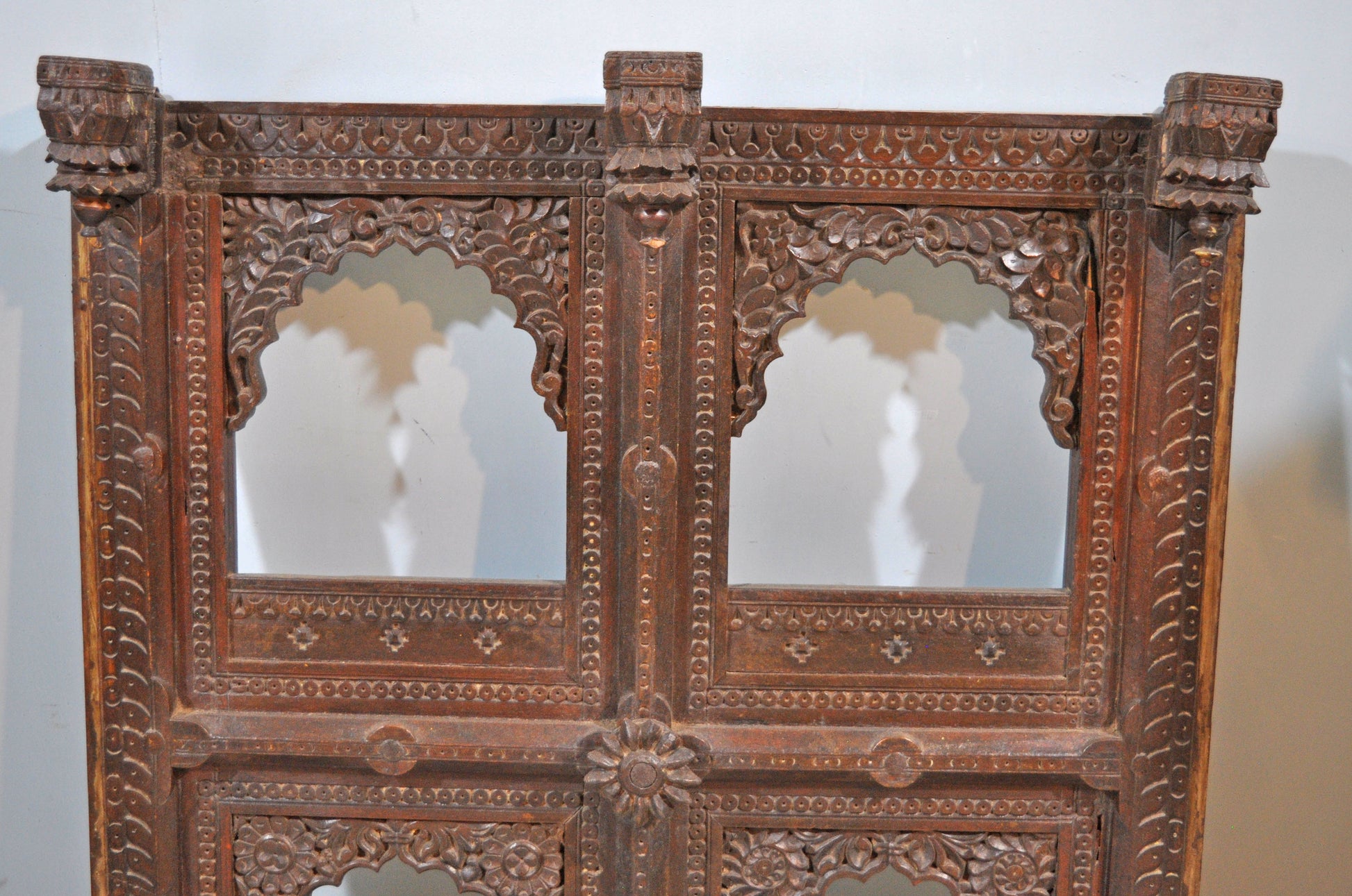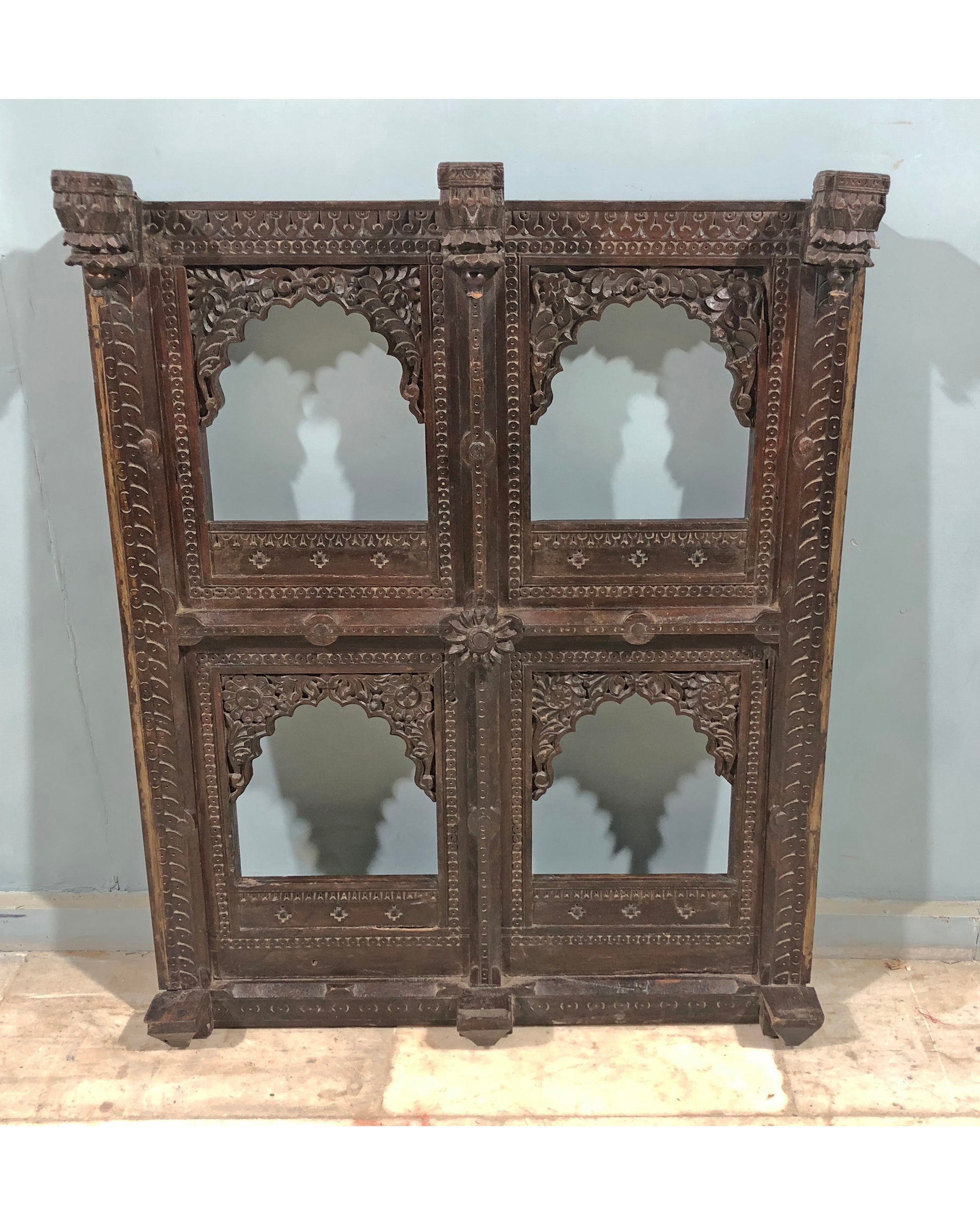 Antique Wooden Wall Décor Large Jharoka Arch Frame Original Old Floral Carved