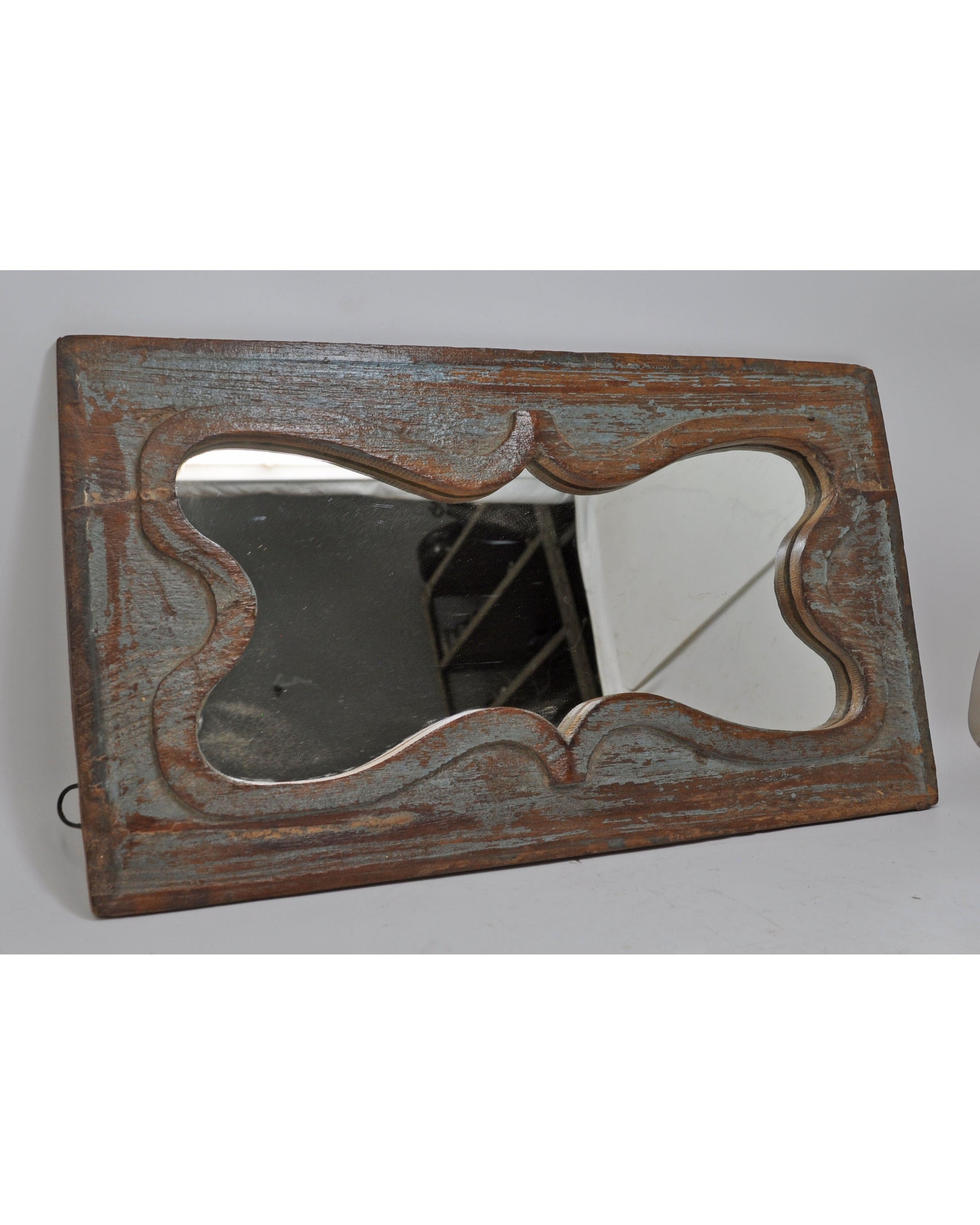 Antique Wooden Wall Décor Mirror Frame Original Old Hand Crafted Polychrome Rustic