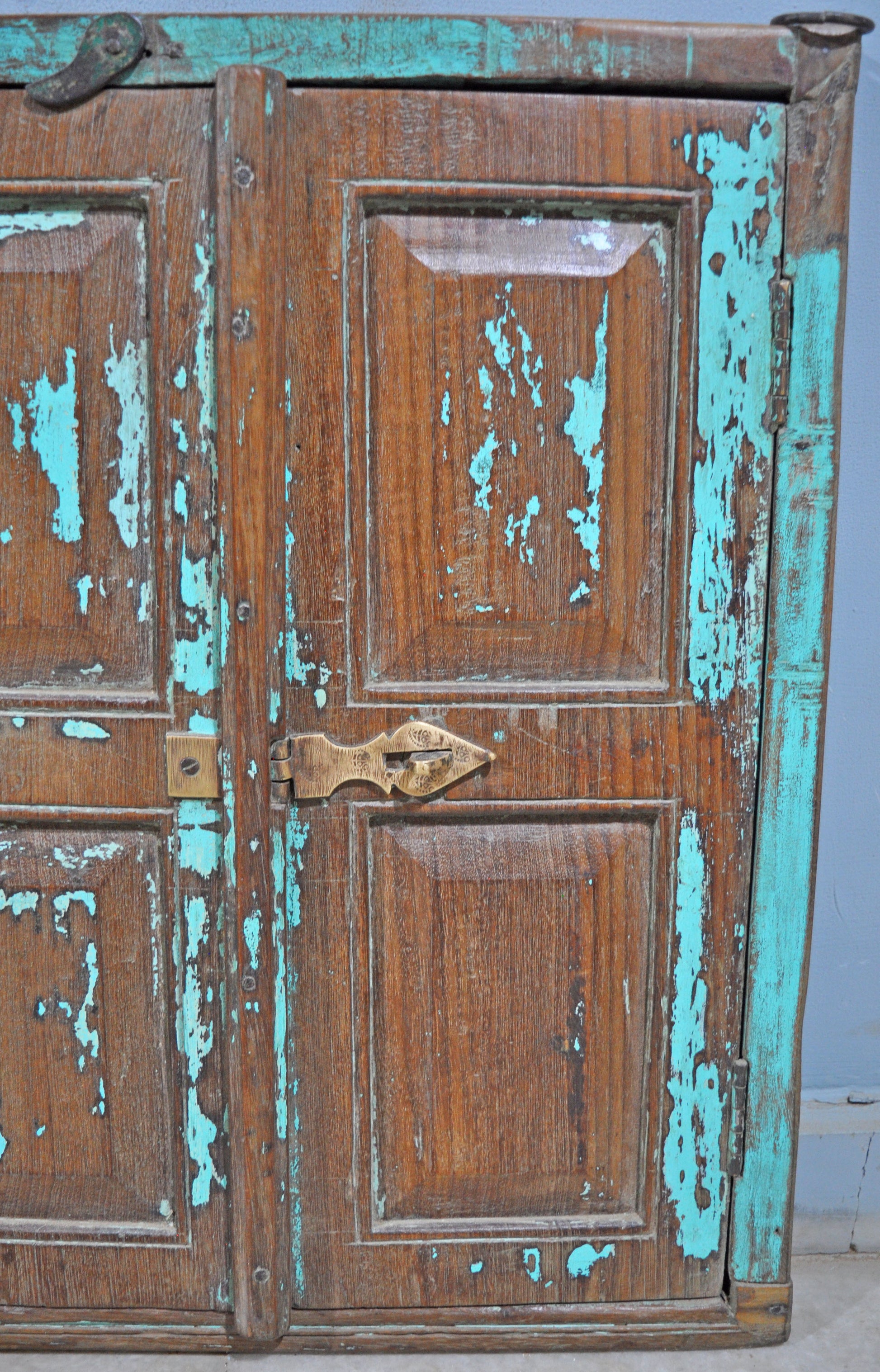 This beautiful old wooden window with its original frame has an incredible story to tell. It is hand crafted from a good size piece of wood and is adorned with metal strips. The very warm, rustic green color complements the rich patina and the wood is in very good condition. The origins of this beautiful window can be traced back to India.