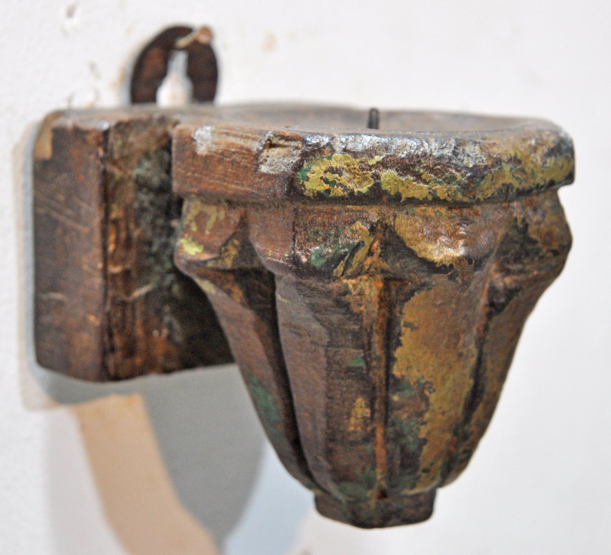 Antique Wooden Wall Hanging Candle Holder Stand Original Old Hand Carved