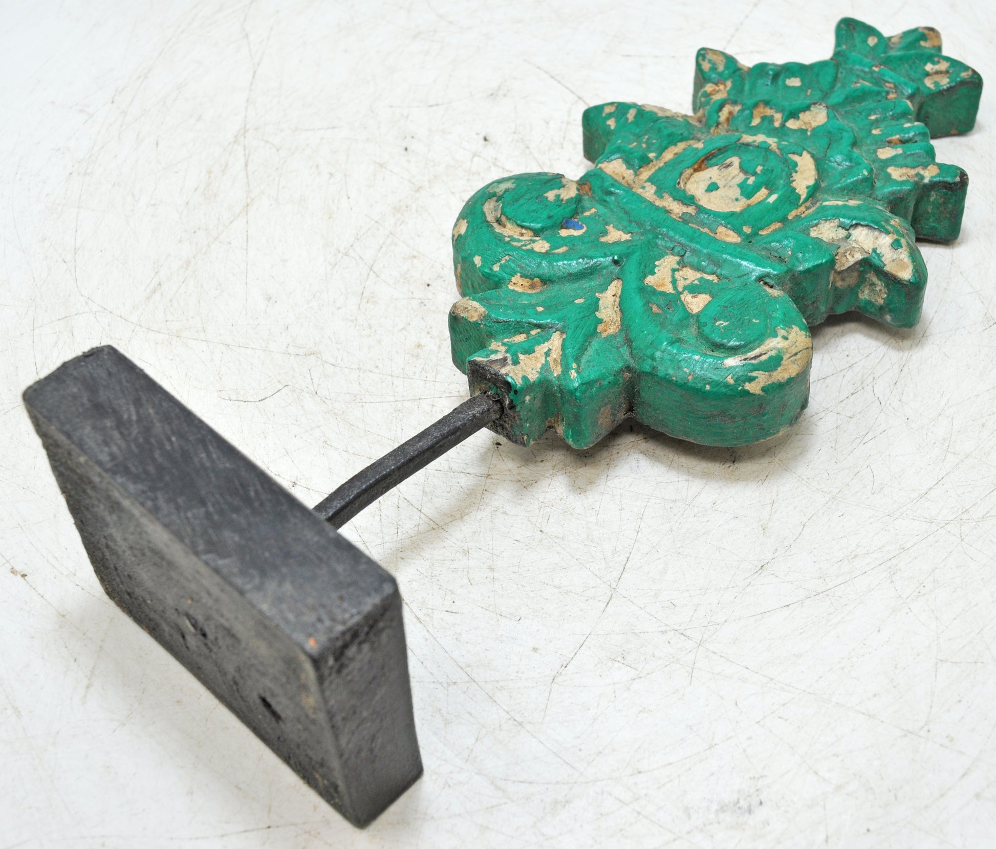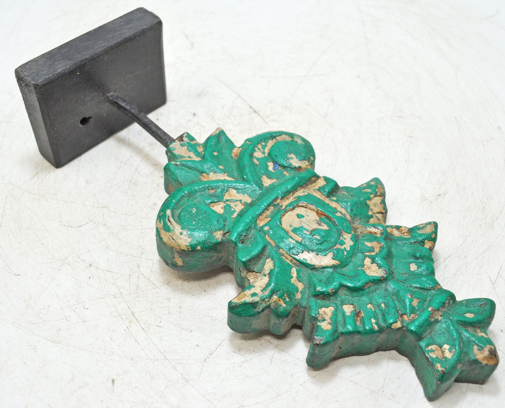 Hand Carved Wooden Flower Carving Panel Plaque on Stand Rustic Green Painted