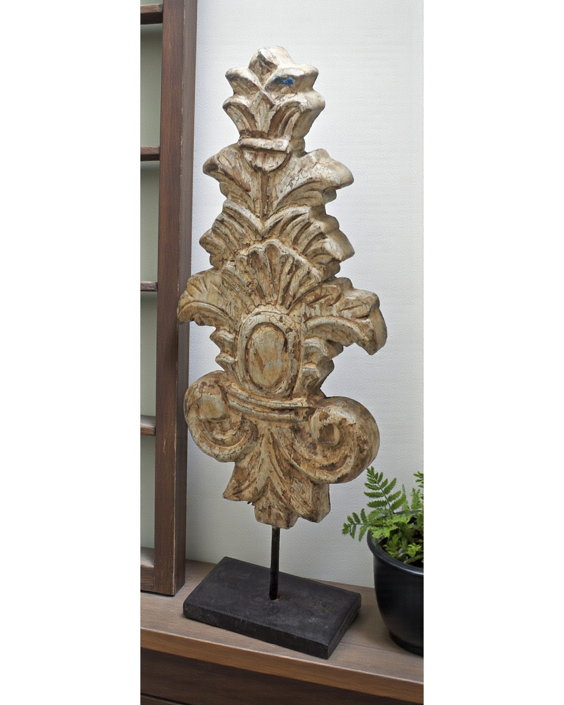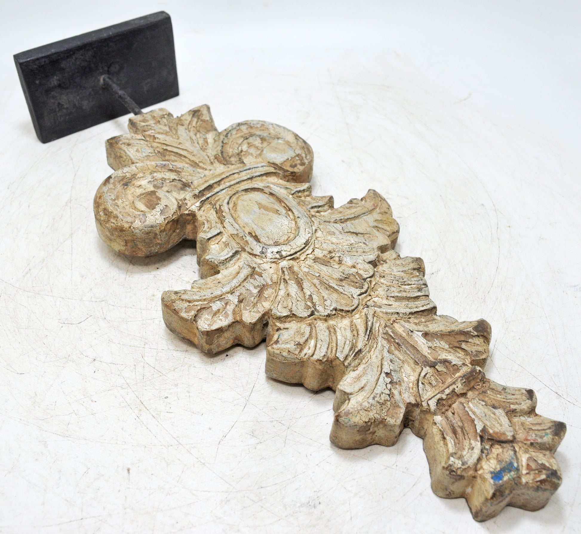 Hand Carved Wooden Flower Carving Panel Plaque on Stand Rustic White Painted