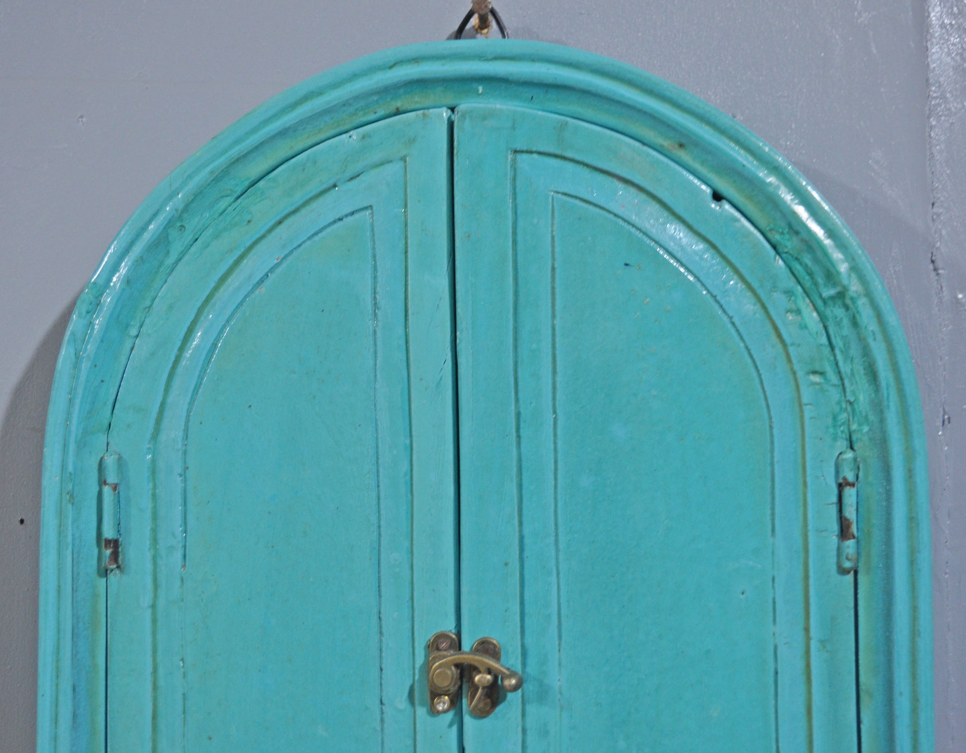 Hand Crafted Wooden Arch Shaped Wall Décor Window Frame Mirror Bright Blue