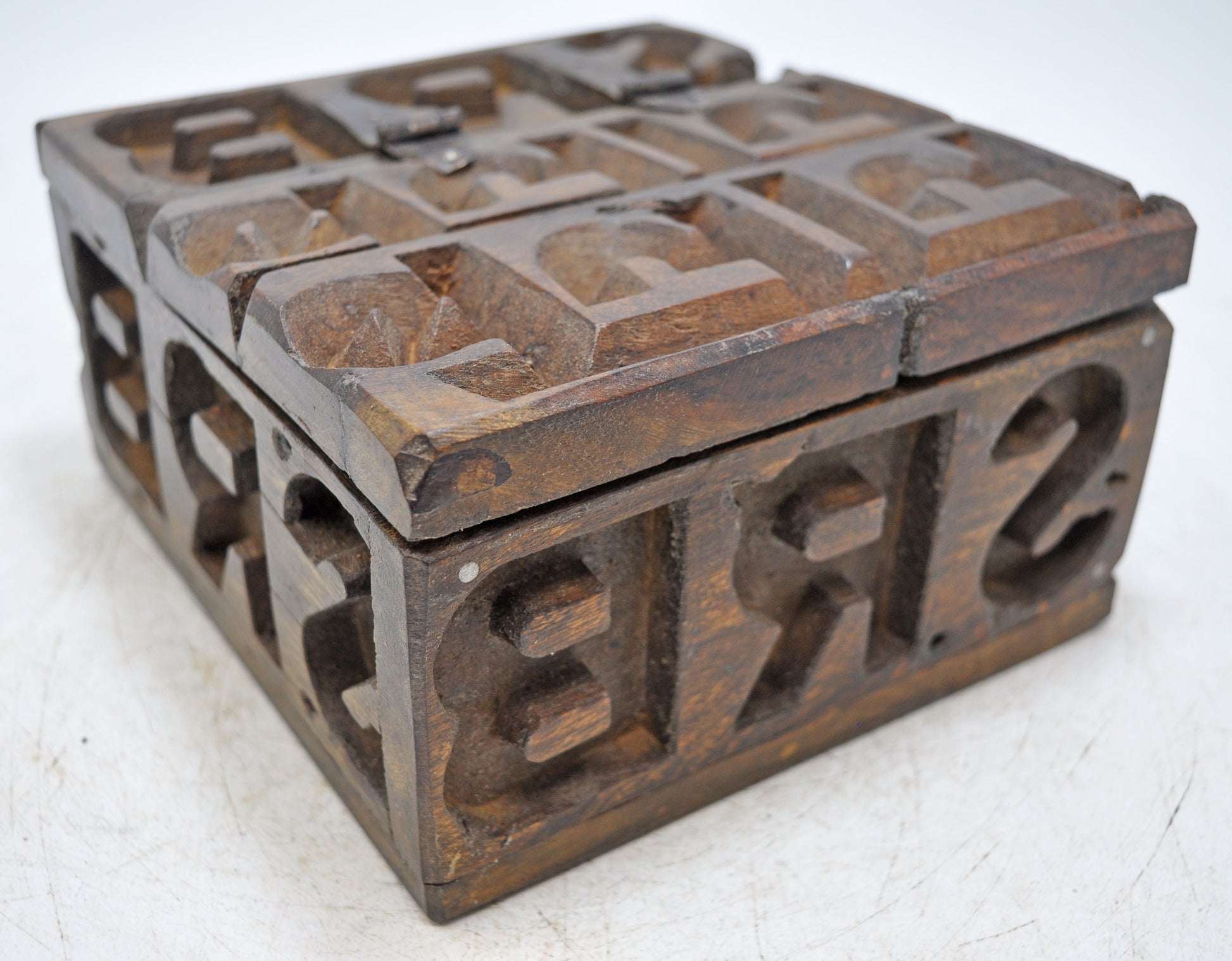 This small, square storage box is a great example of both reclaimed and handcrafted. Made out of old mold blocks, the wood was hand-crafted into this stylish box. The wood displays a beautiful dark color and has been treated to maintain a nice patina. This box was imported from India.