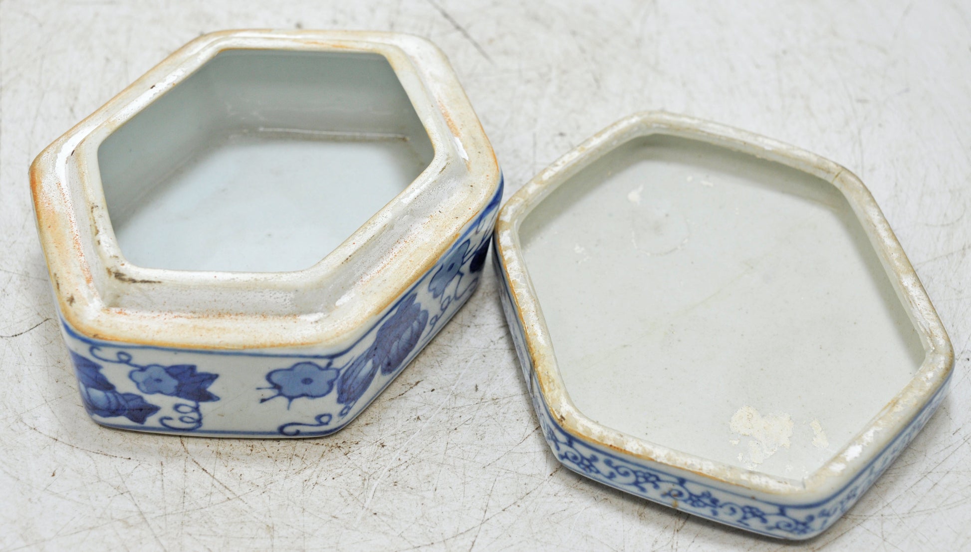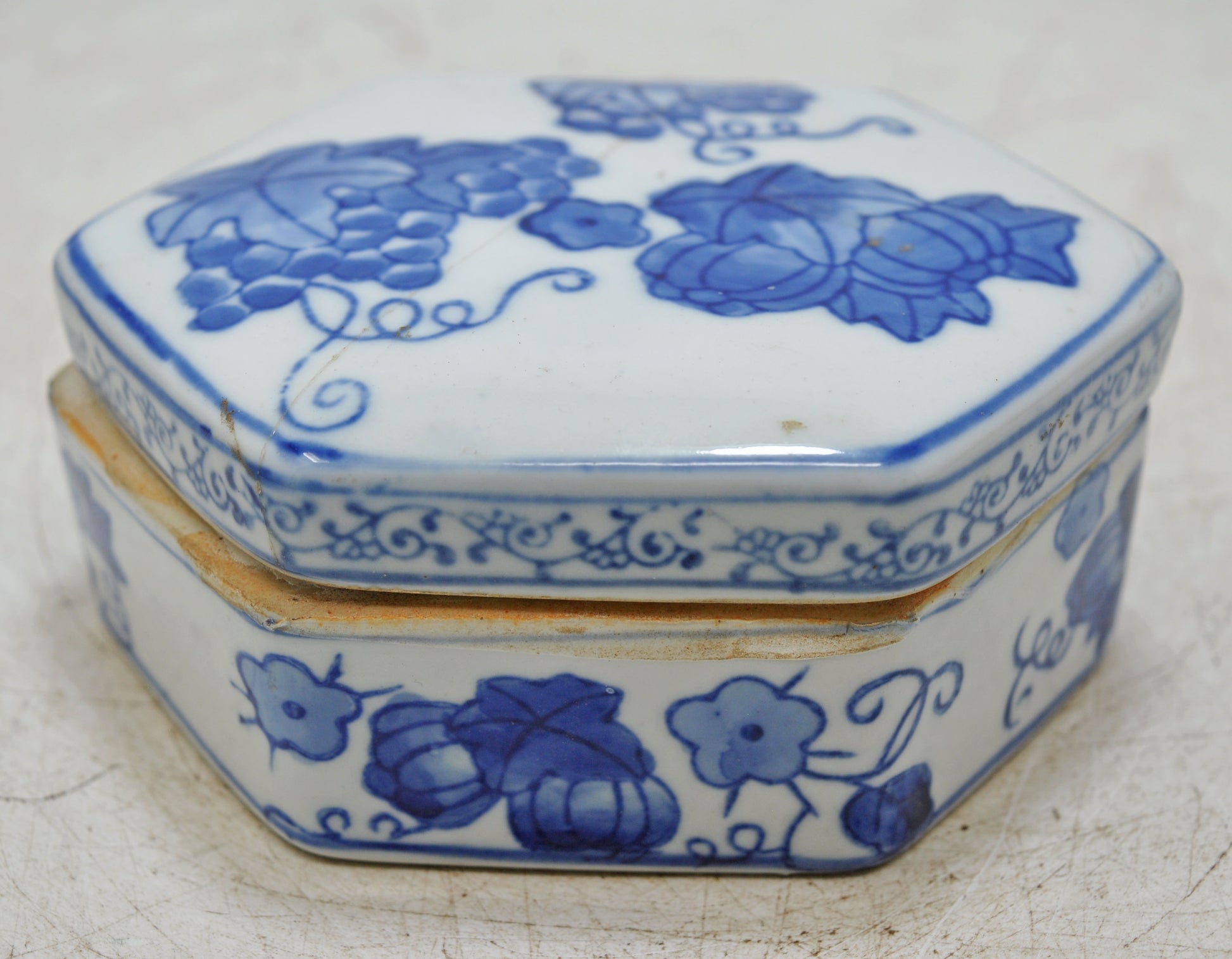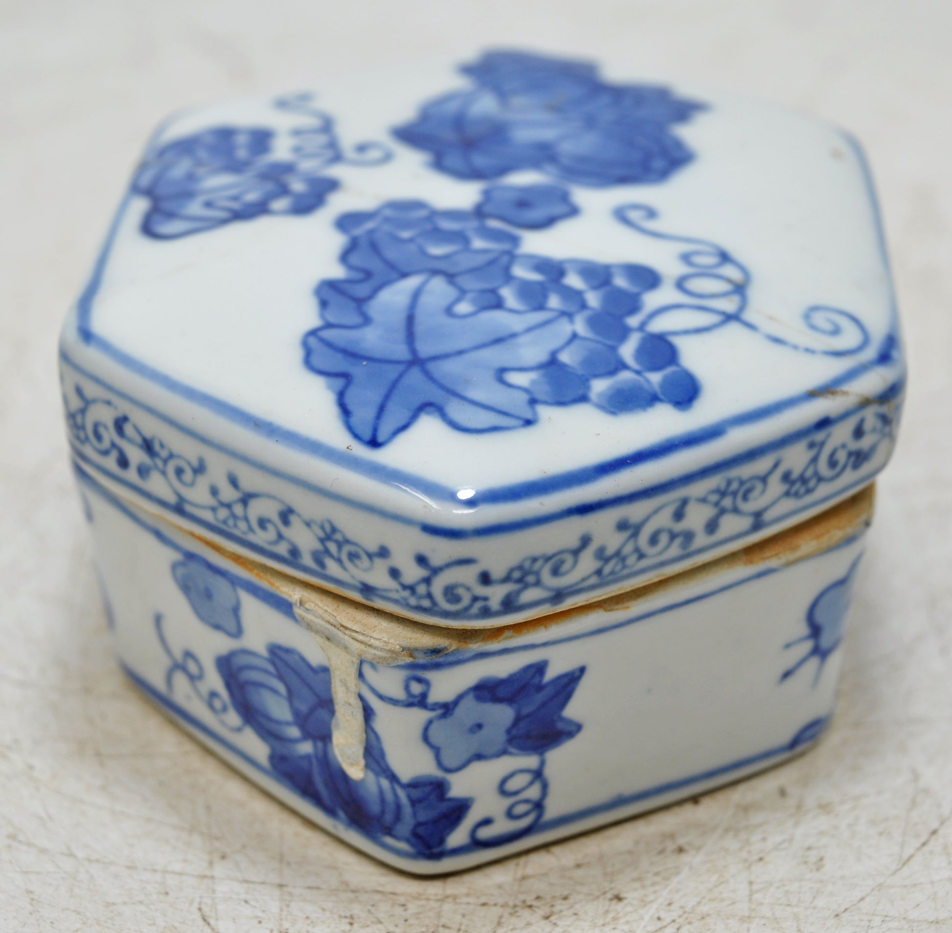 Vintage Blue Pottery Small Box Original Old Hand Crafted