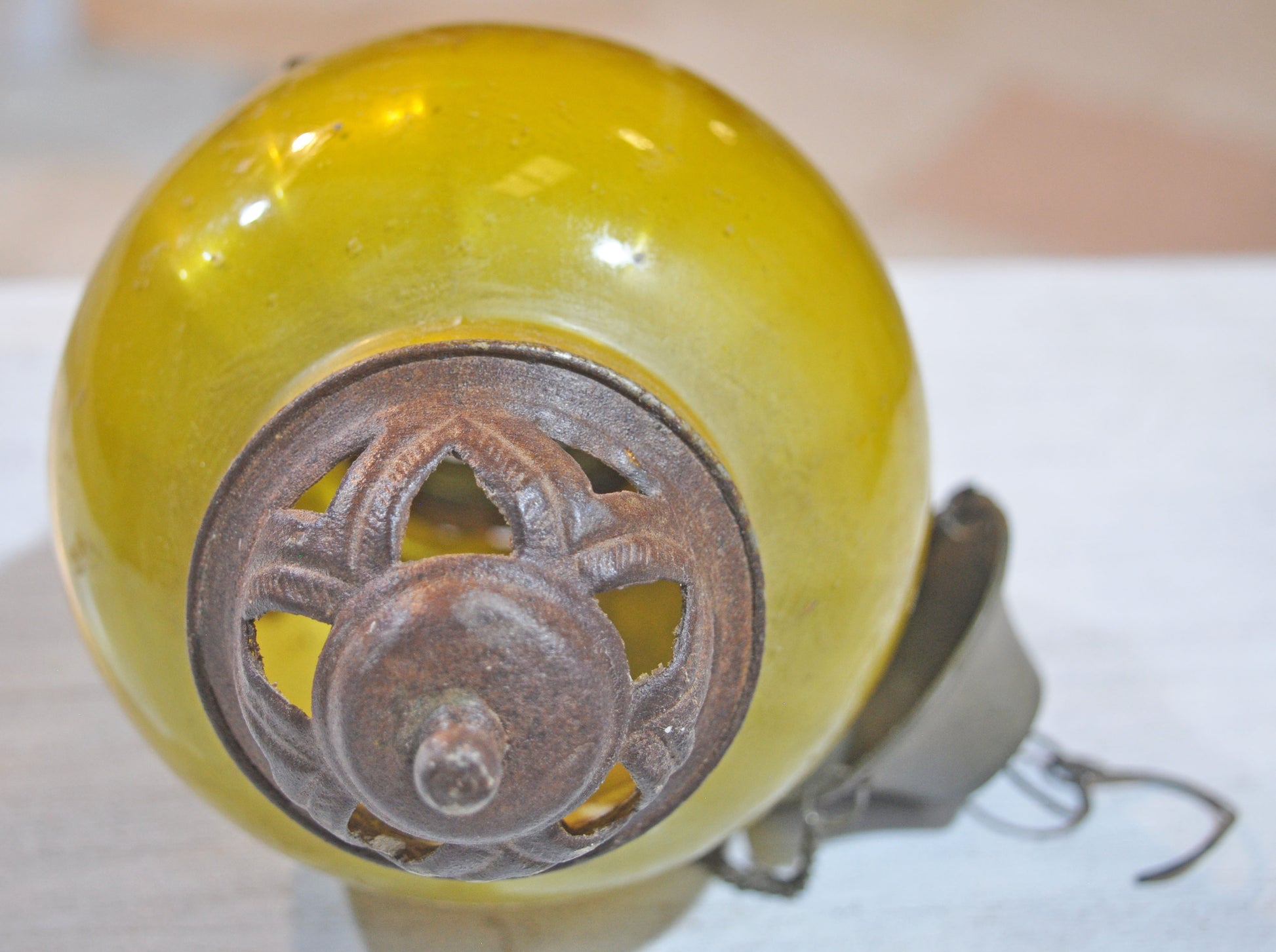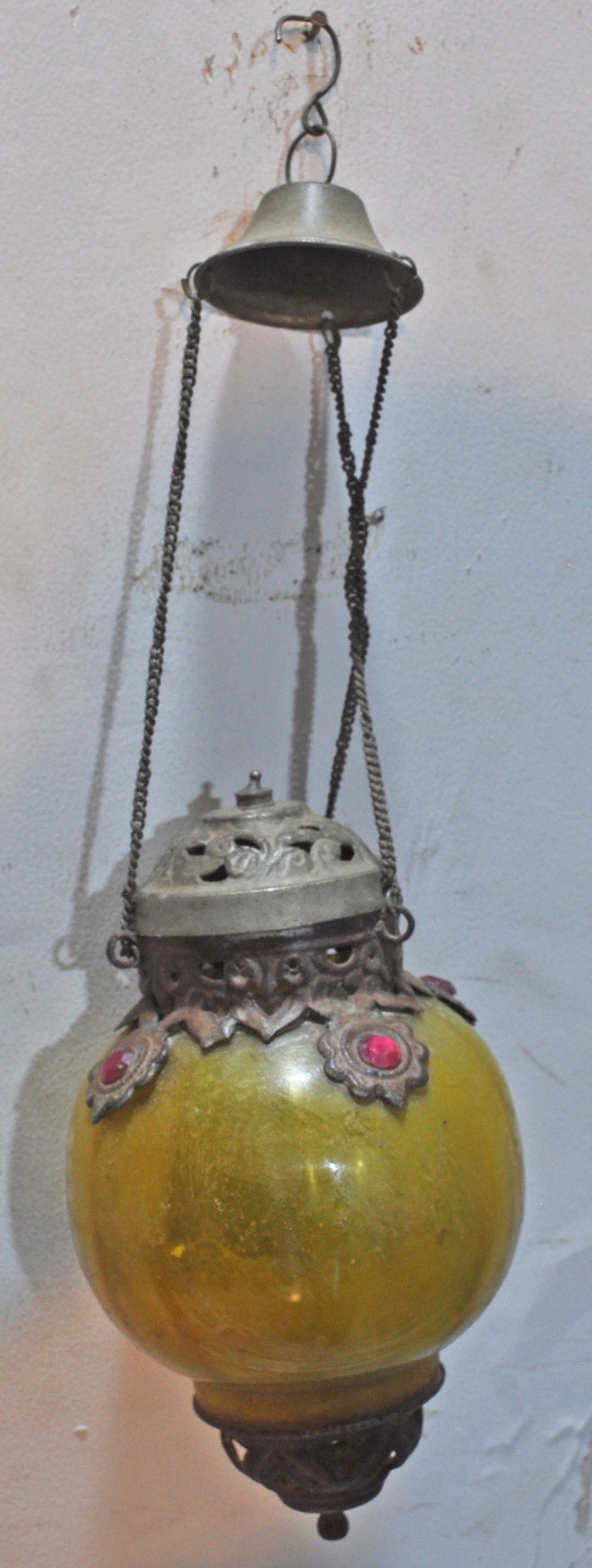 Vintage Glass Brass Hanging Candle Lamp Original Old Hand Crafted