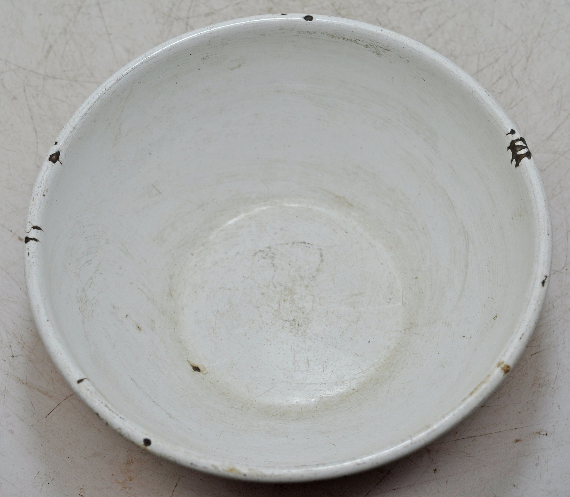 Vintage Iron Enamelware Round Bowl Original Old Hand Crafted Enamel Painted