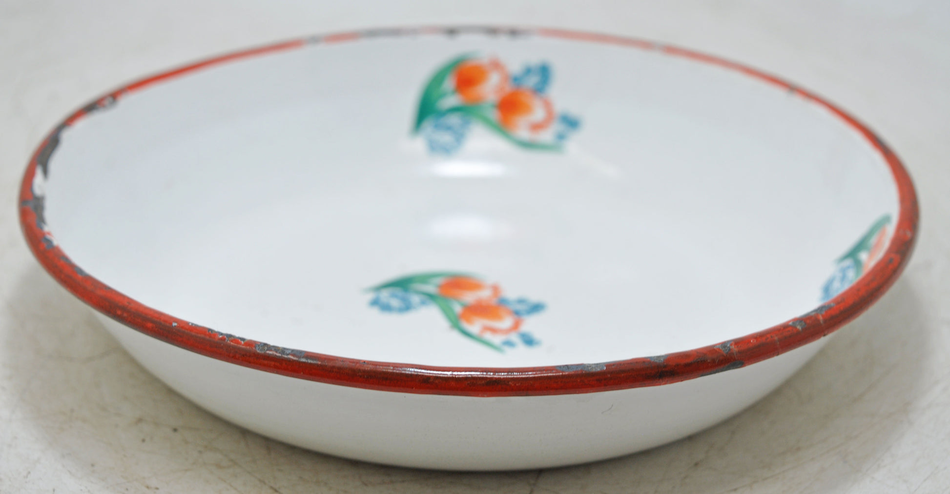Vintage Iron Enamelware Round Plate Original Old Hand Crafted Enamel Painted