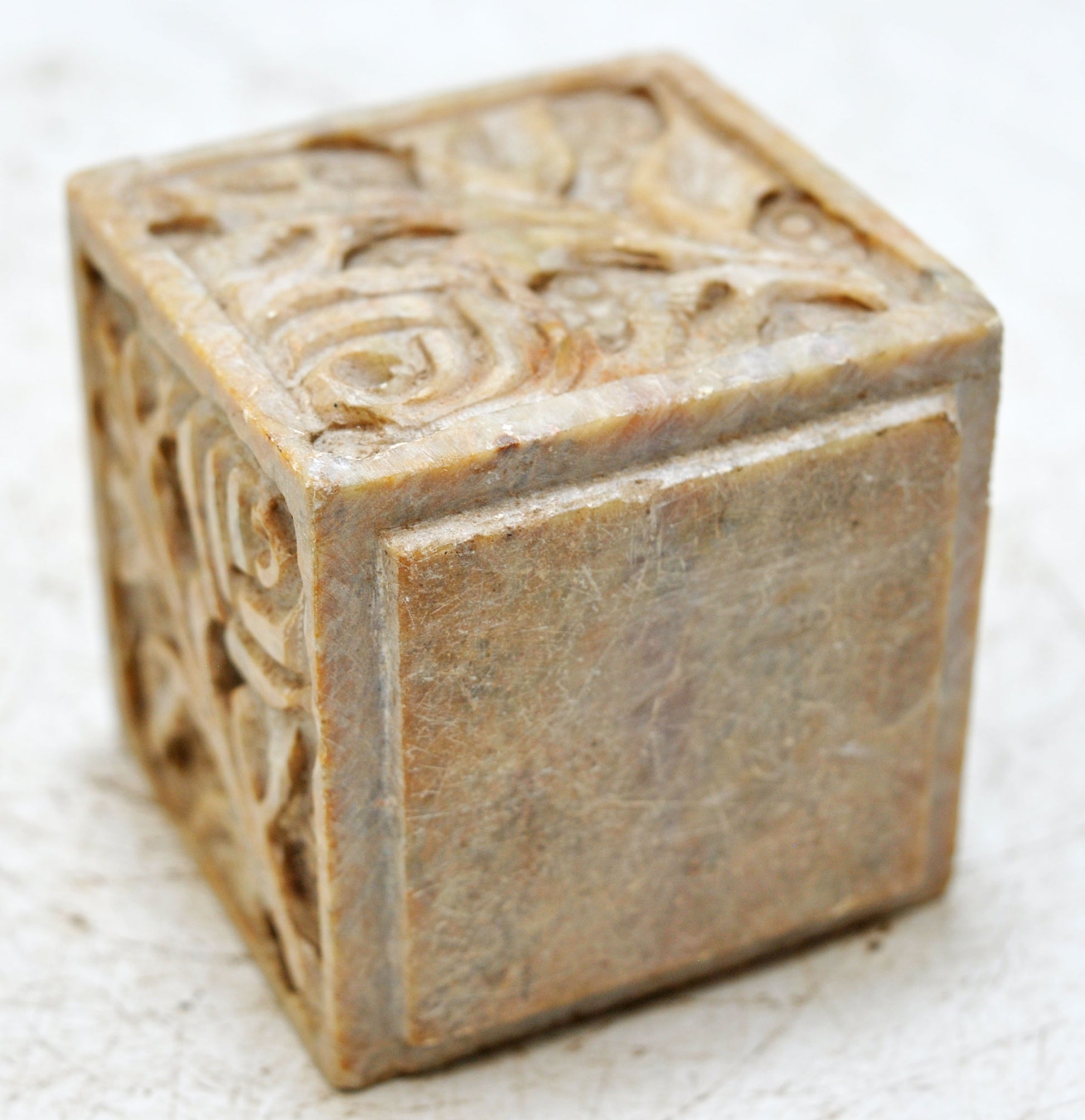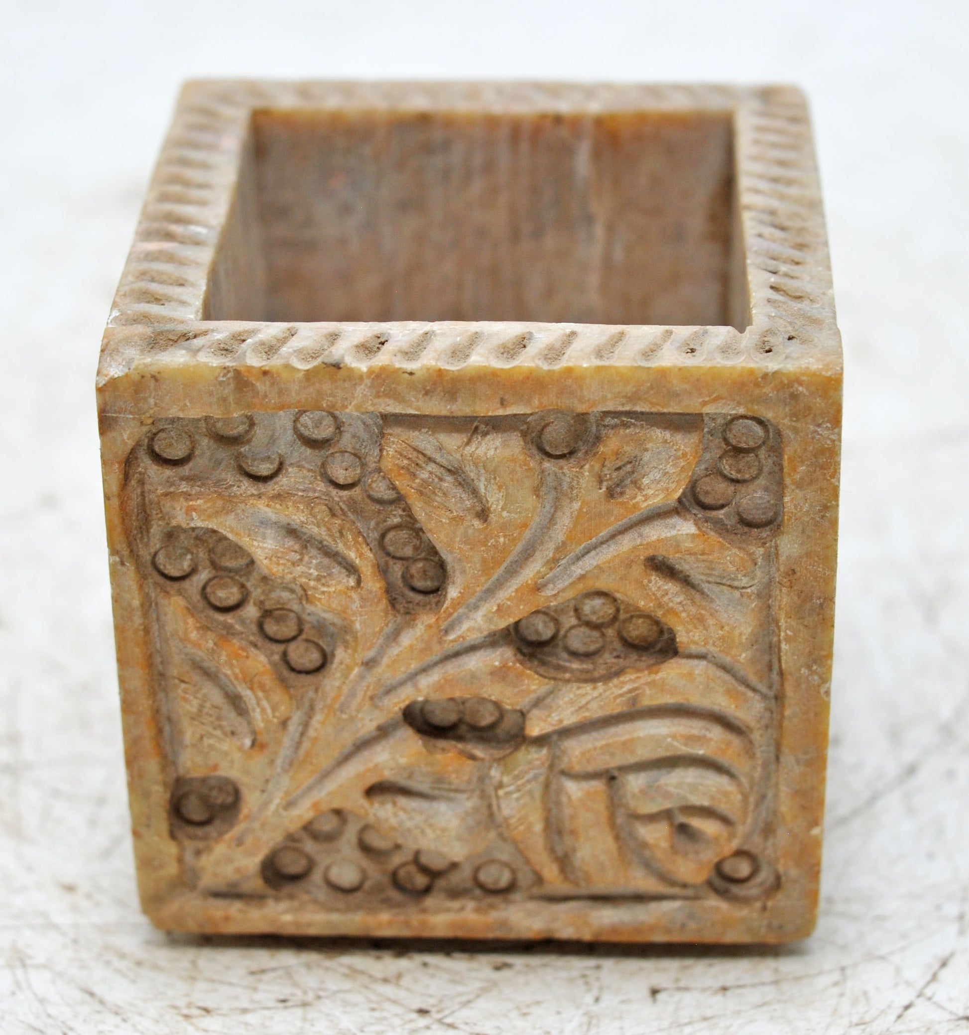 Vintage Stone Square Small Container Pot Original Old Hand Carved