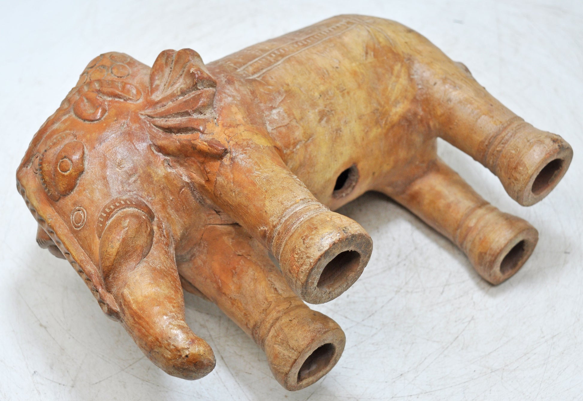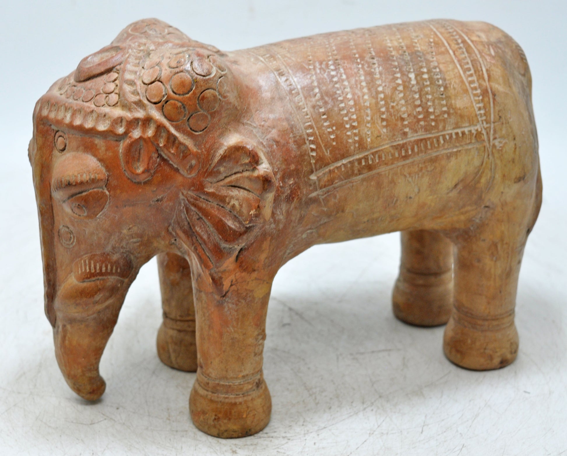 Vintage Terracotta Pottery Elephant Figurine Hand Crafted Fine Painted
