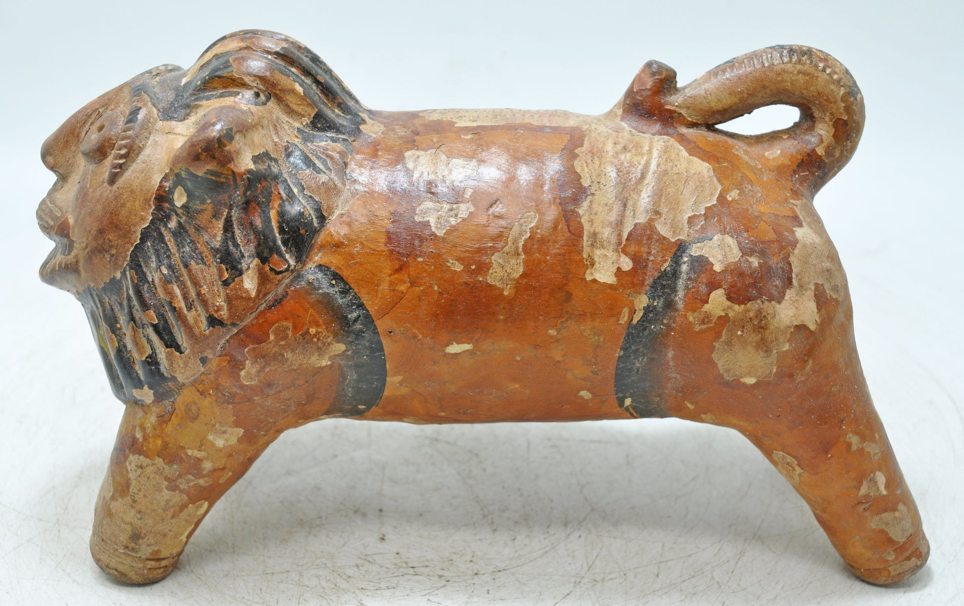 Vintage Terracotta Pottery Lion Figurine Original Old Hand Crafted Painted