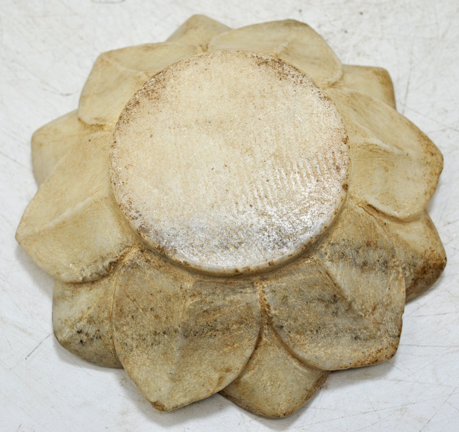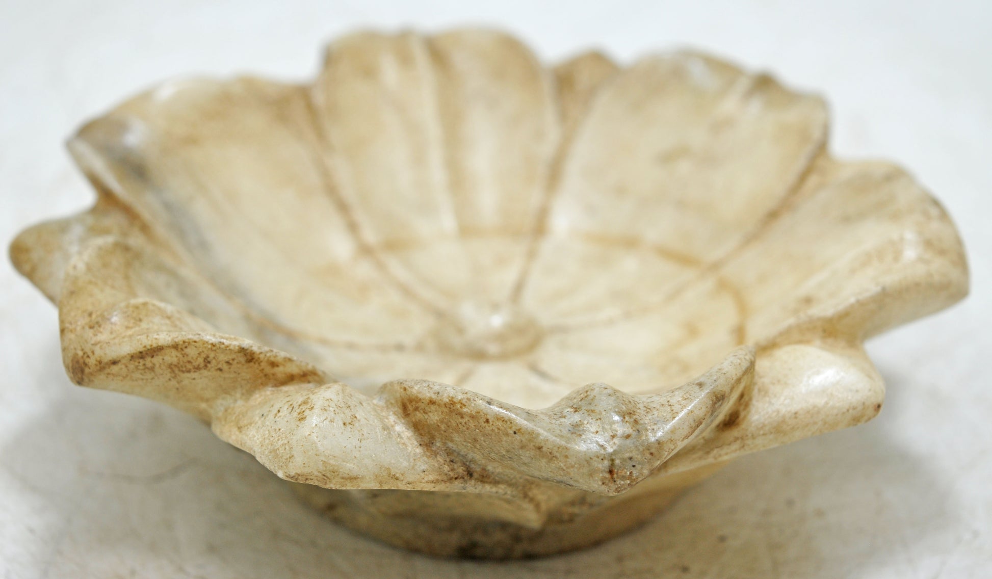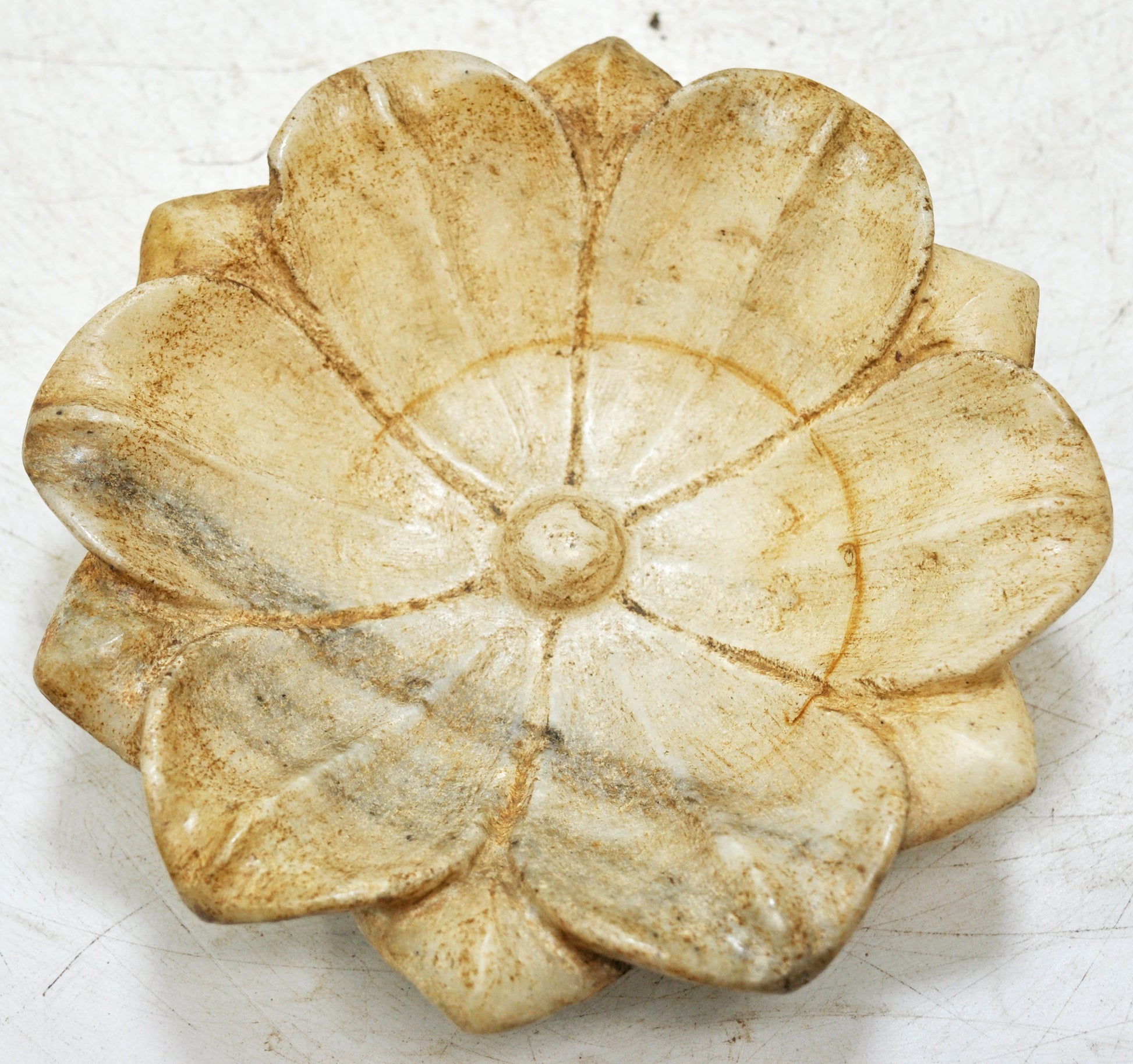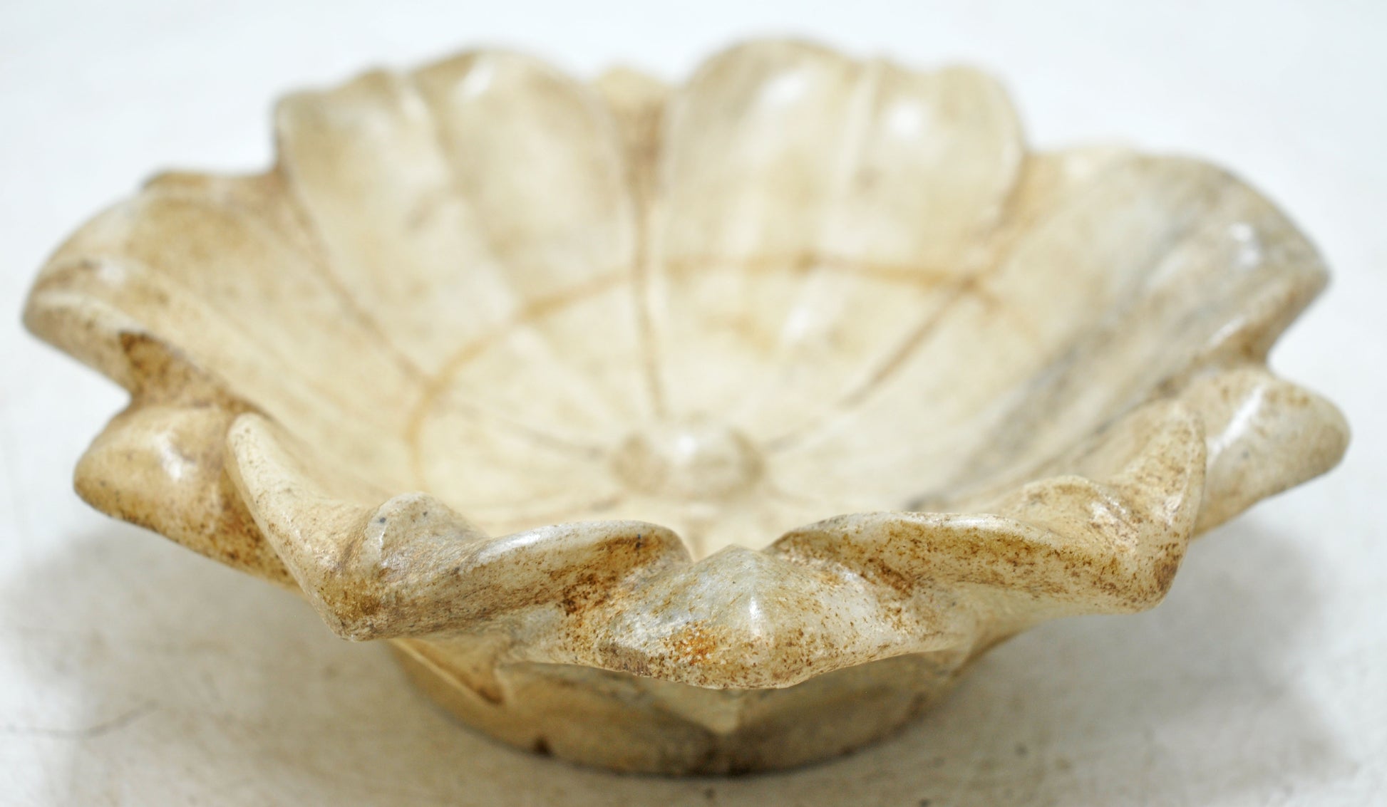 Vintage White Marble Lotus Shaped Bowl Original Old Fine Hand Carved