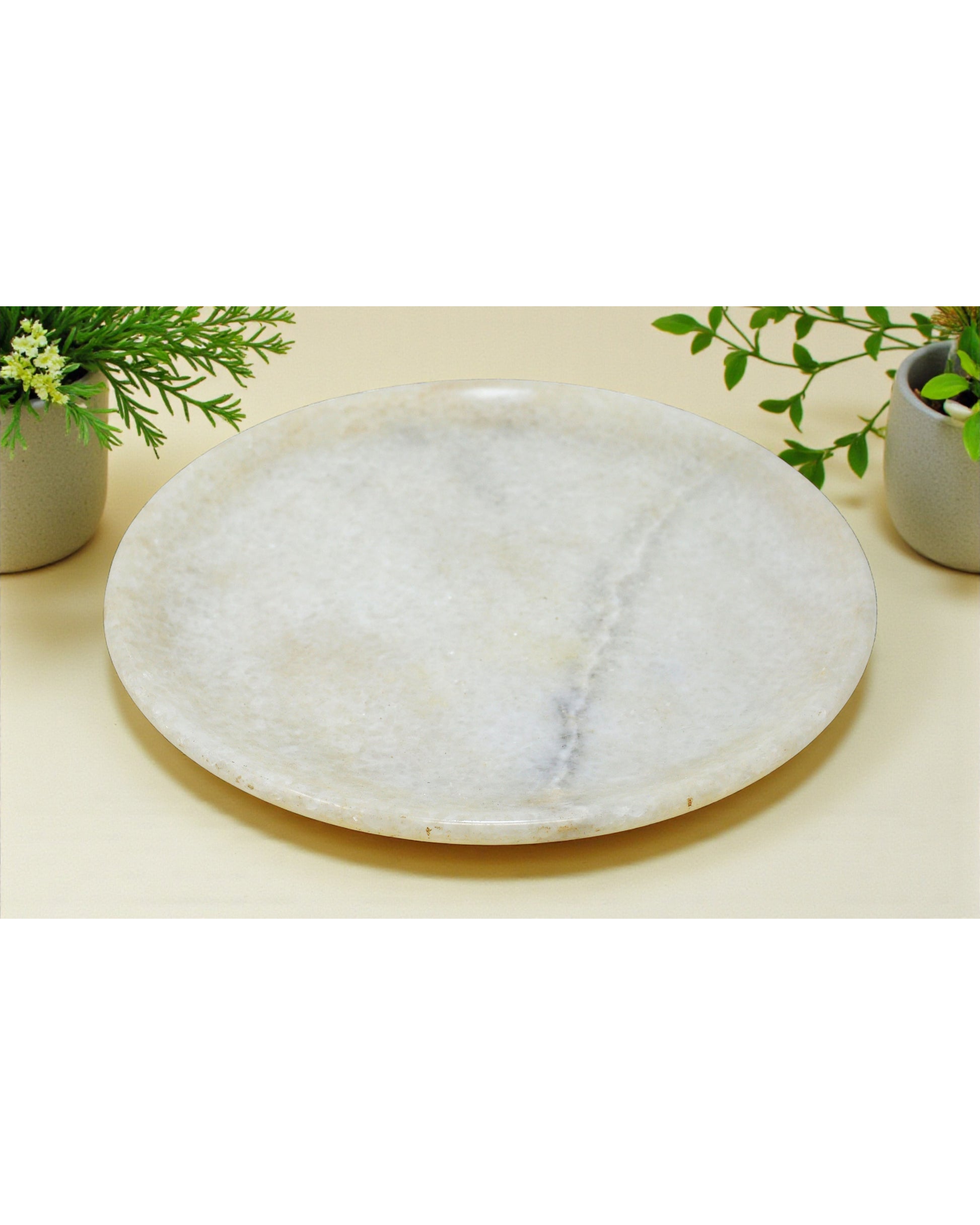 An old round plate crafted from fine white marble, shaped skillfully by hand into a soft and elegant form. Over time, the marble has gained an attractive patina that enhances the stone’s natural veining and texture. This plate carries a soothing visual presence, perfect for adding a touch of sophistication to consoles, tabletops, or curated displays. A piece that reflects heritage, simplicity, and thoughtful workmanship. Good condition. Origin India.