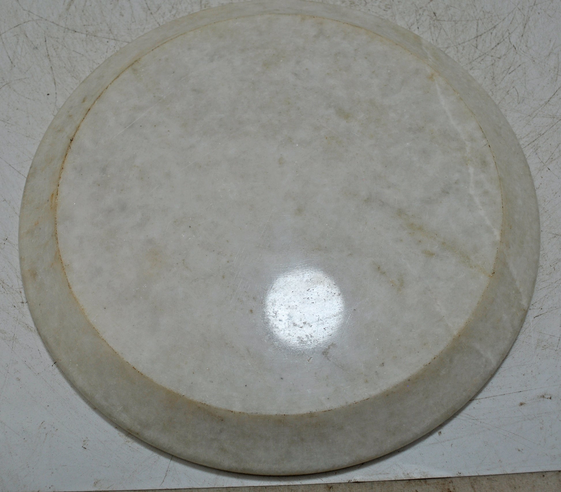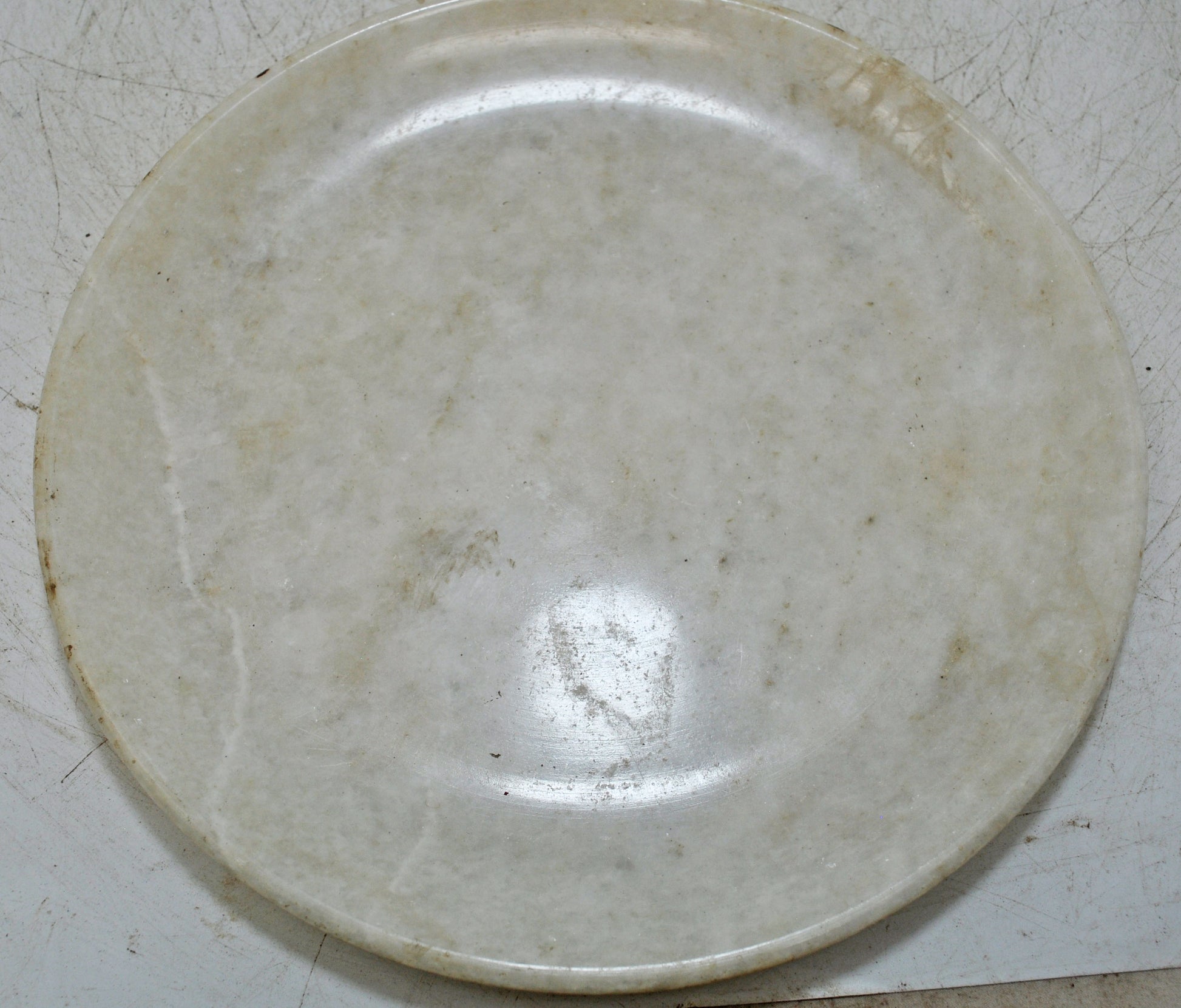Vintage White Marble Round Kitchenware Plate Original Old Hand Carved