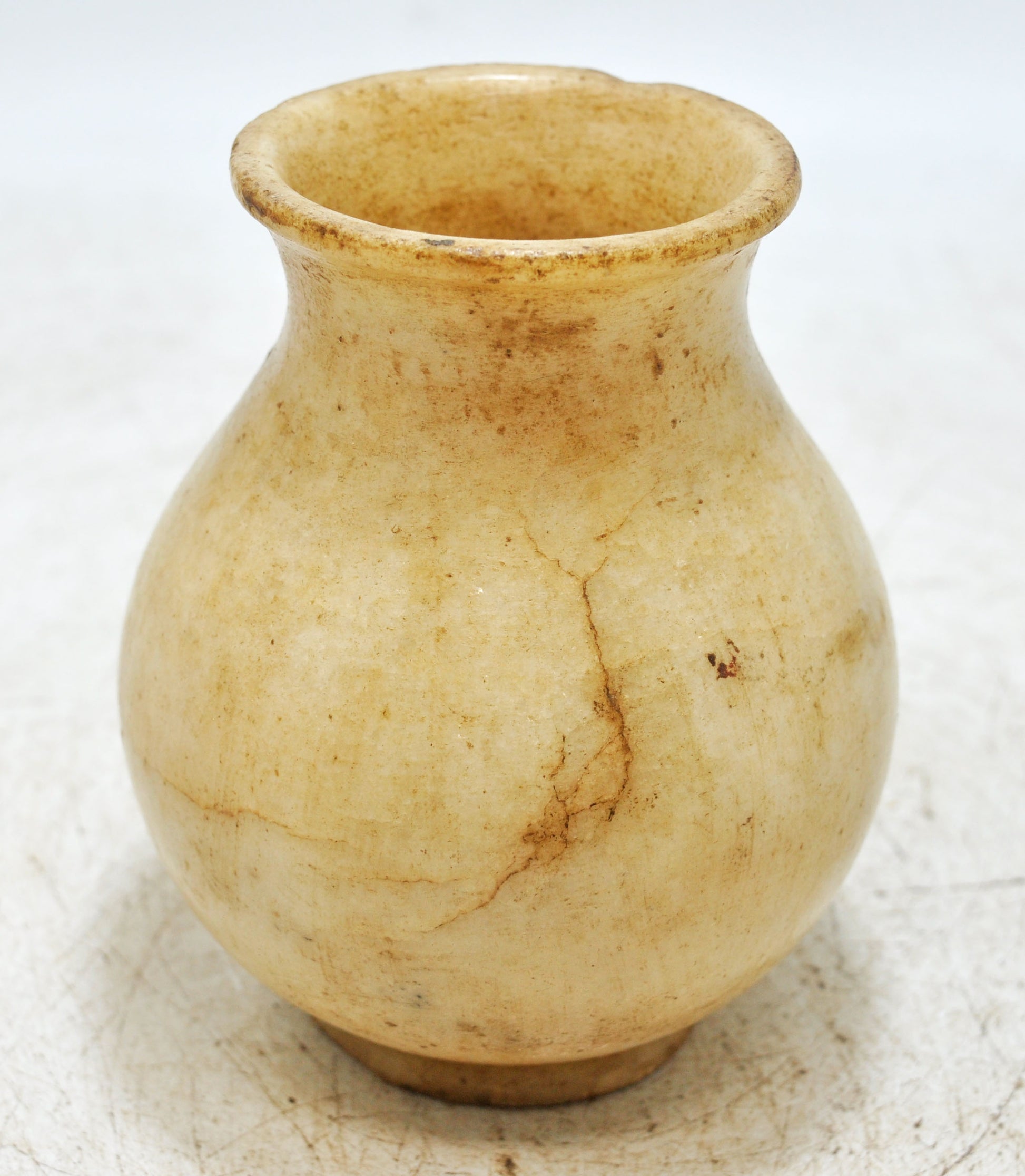 Vintage White Marble Round Water Lota Pot Original Old Fine Hand Carved