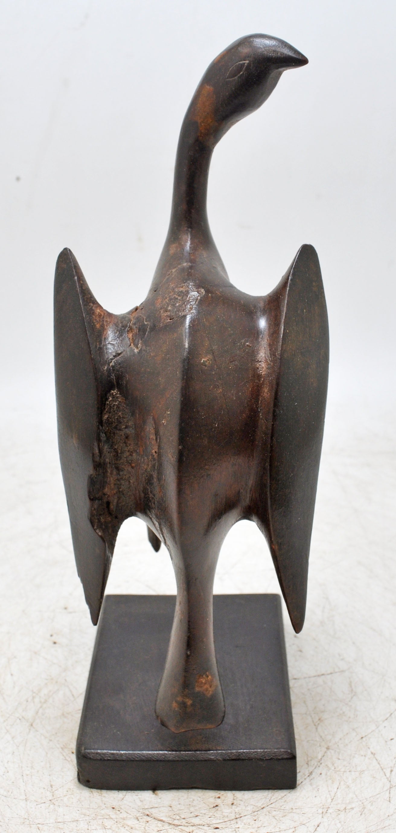 Masterfully hand-shaped, this wooden bird figurine combines graceful form with intricate carving, showcasing a rich aged patina and excellent condition, from India, celebrating artisanal expertise, traditional woodworking skill, and the exquisite charm of hand-made decorative wooden birds ideal for collectors of heritage décor.