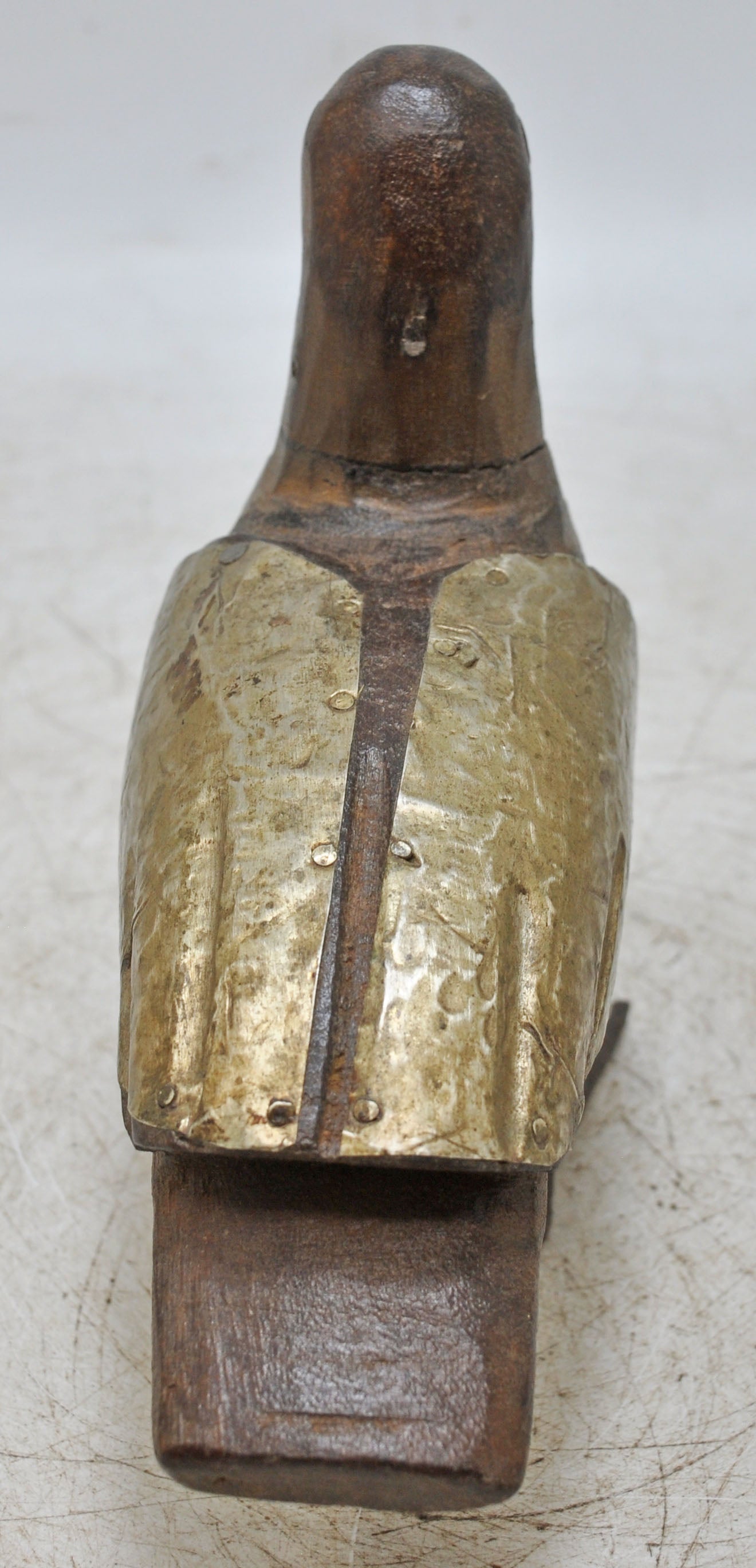 This vintage wooden bird sculpture showcases skilled hand carving with delicate detailing throughout the body and head. The simple yet expressive form highlights classic Indian folk artistry. Natural aging has enriched the surface with a deep patina, adding warmth and authenticity. Well preserved and sturdy, the figurine remains in good overall condition.