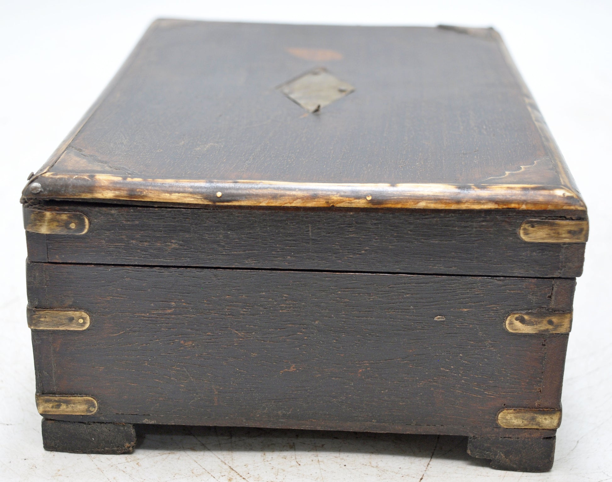 Vintage Wooden Brass Fitted Storage Box Original Old Hand Crafted