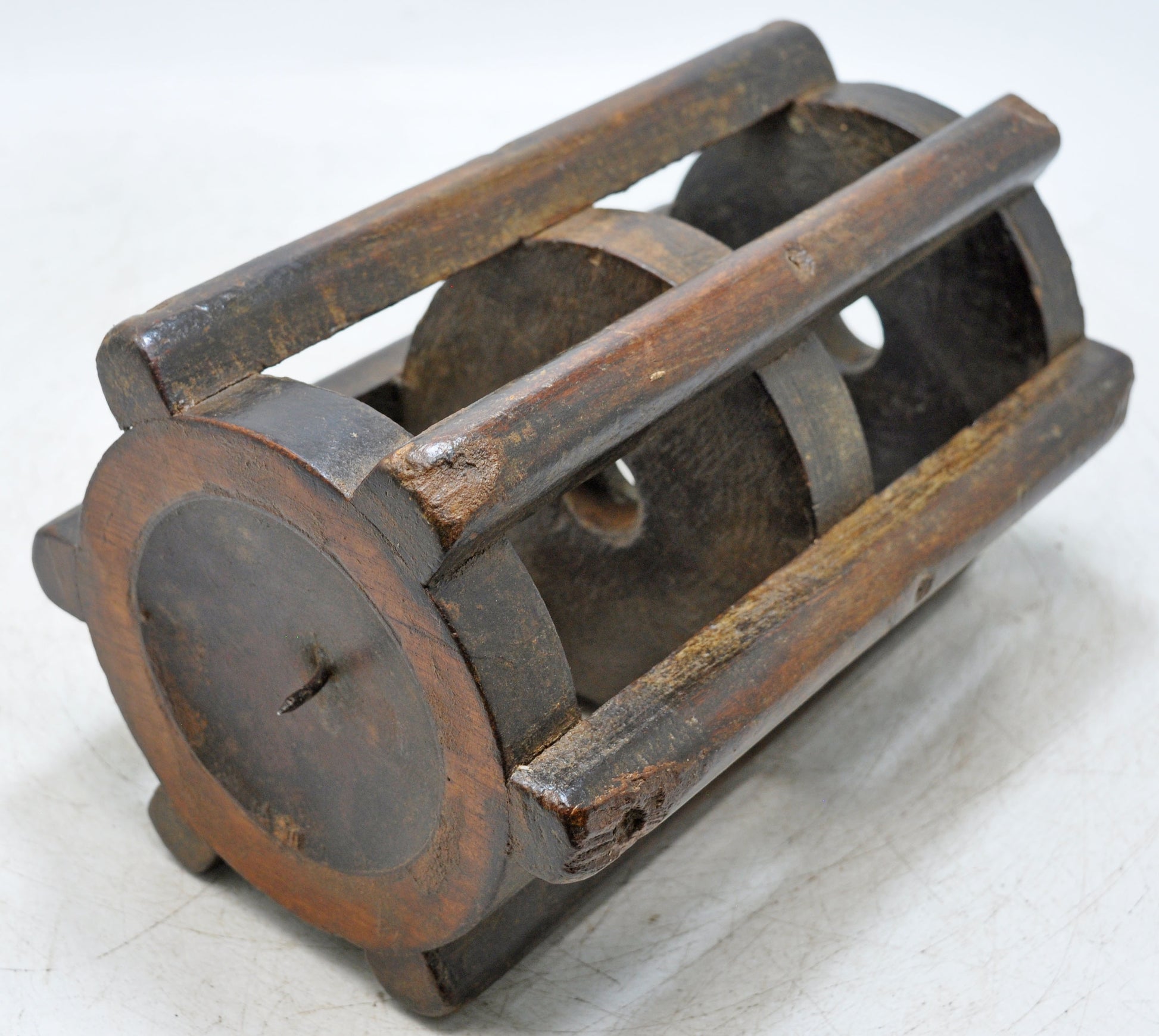 Vintage Wooden Candle Holder Stand Original Old Hand Carved
