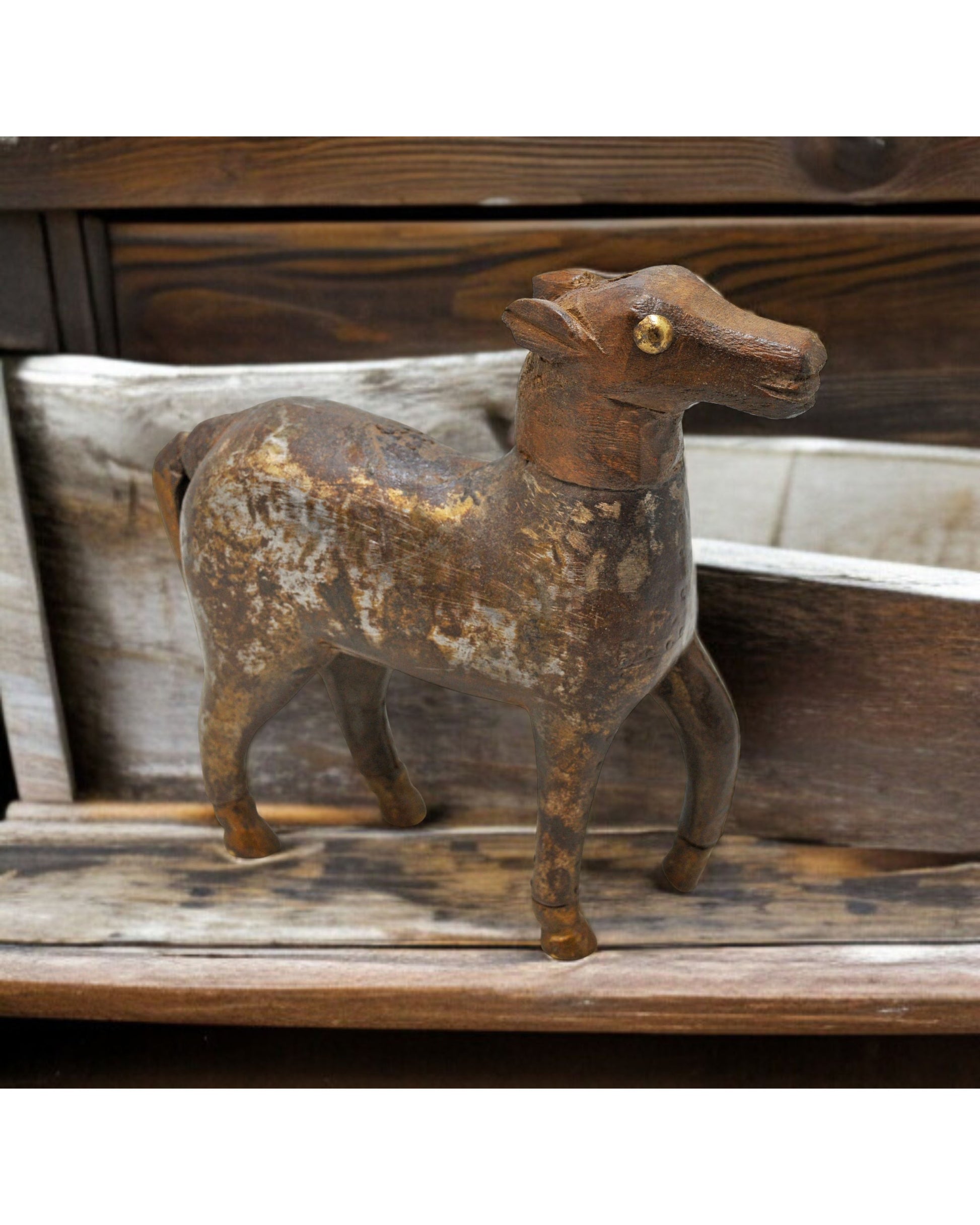 Vintage Wooden Deer Figurine Original Old Hand Carved