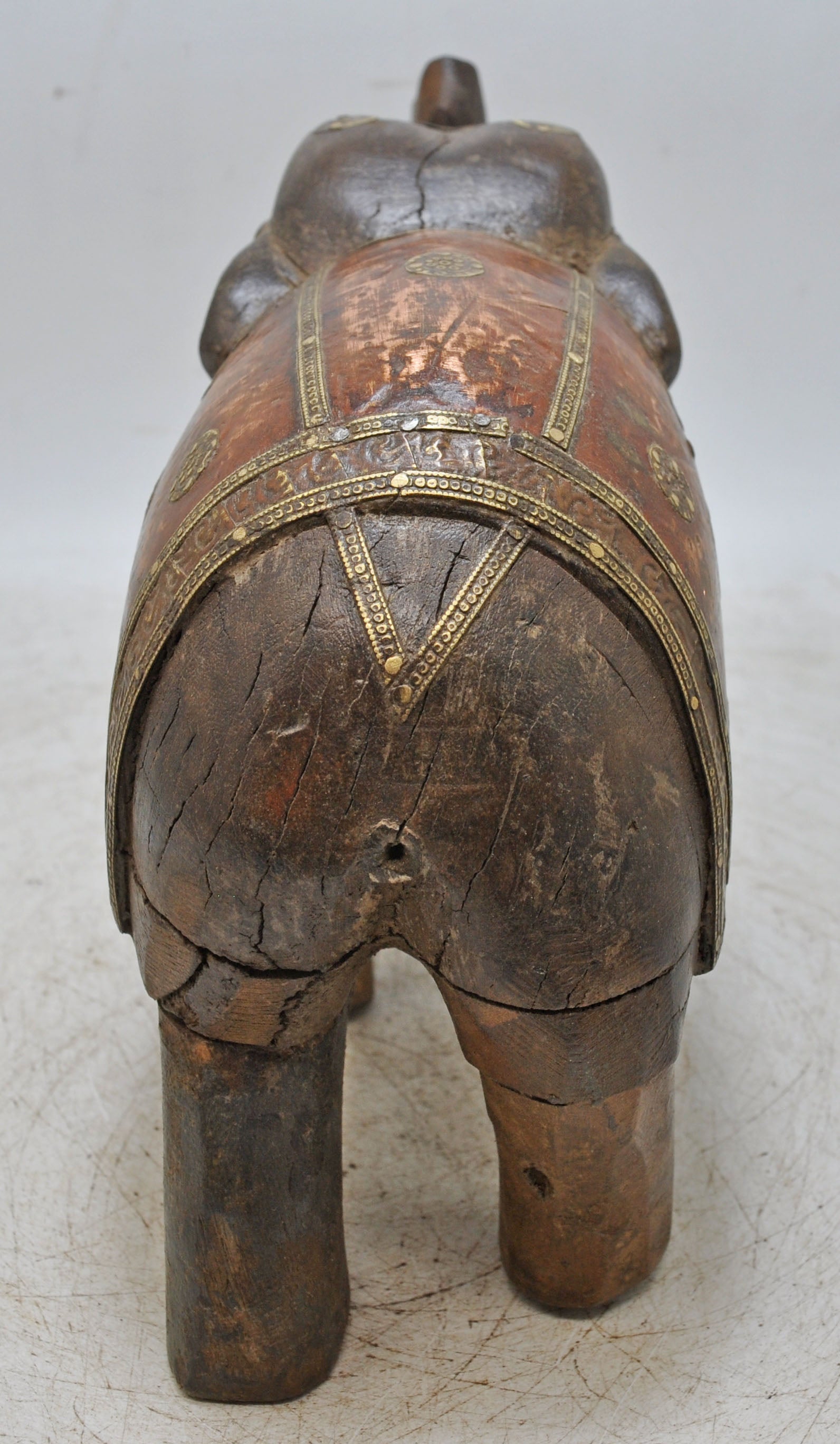 Vintage Wooden Elephant Figurine Original Old Hand Carved Brass Fitted
