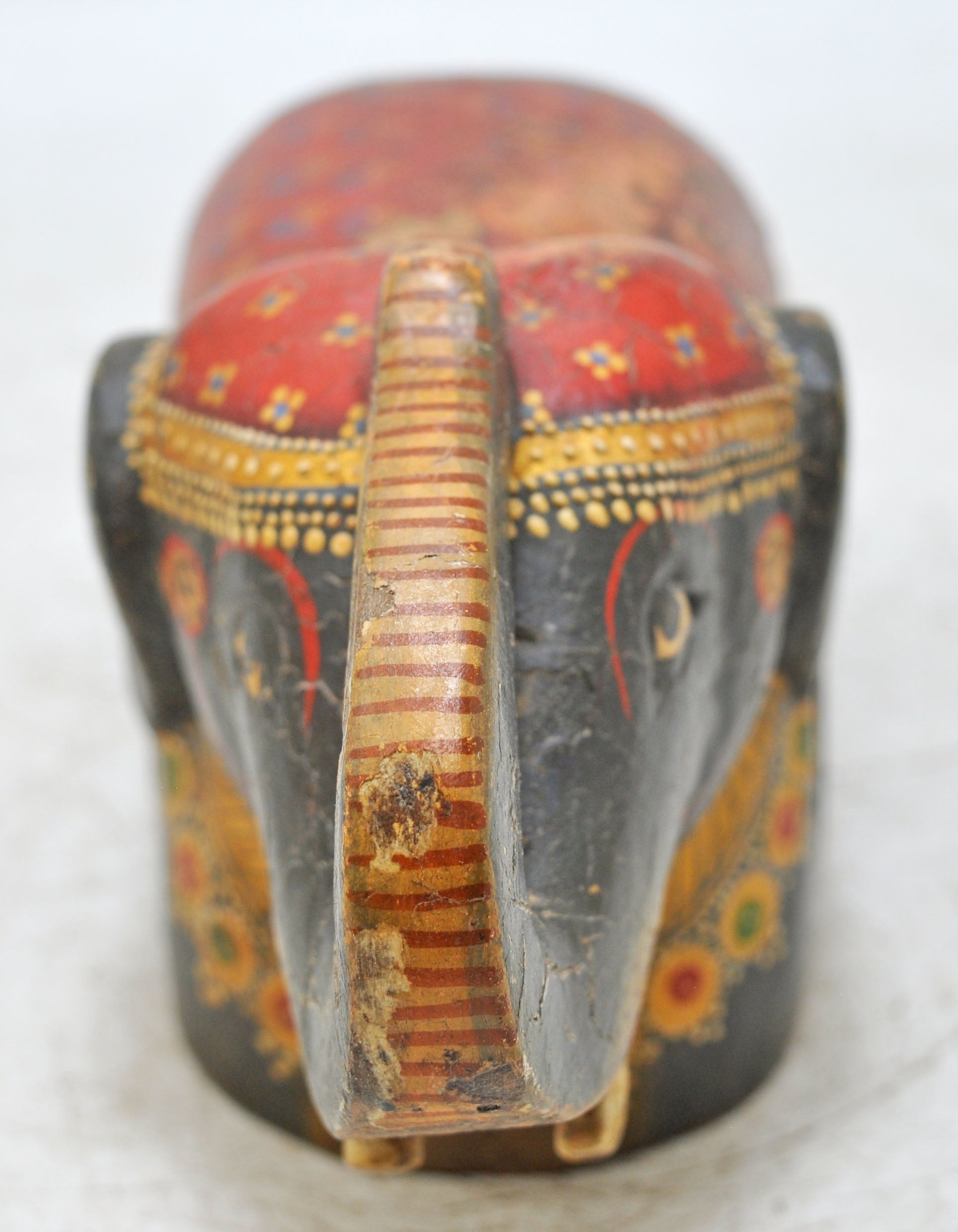 Vintage Wooden Elephant Figurine Original Old Hand Carved Fine Painted