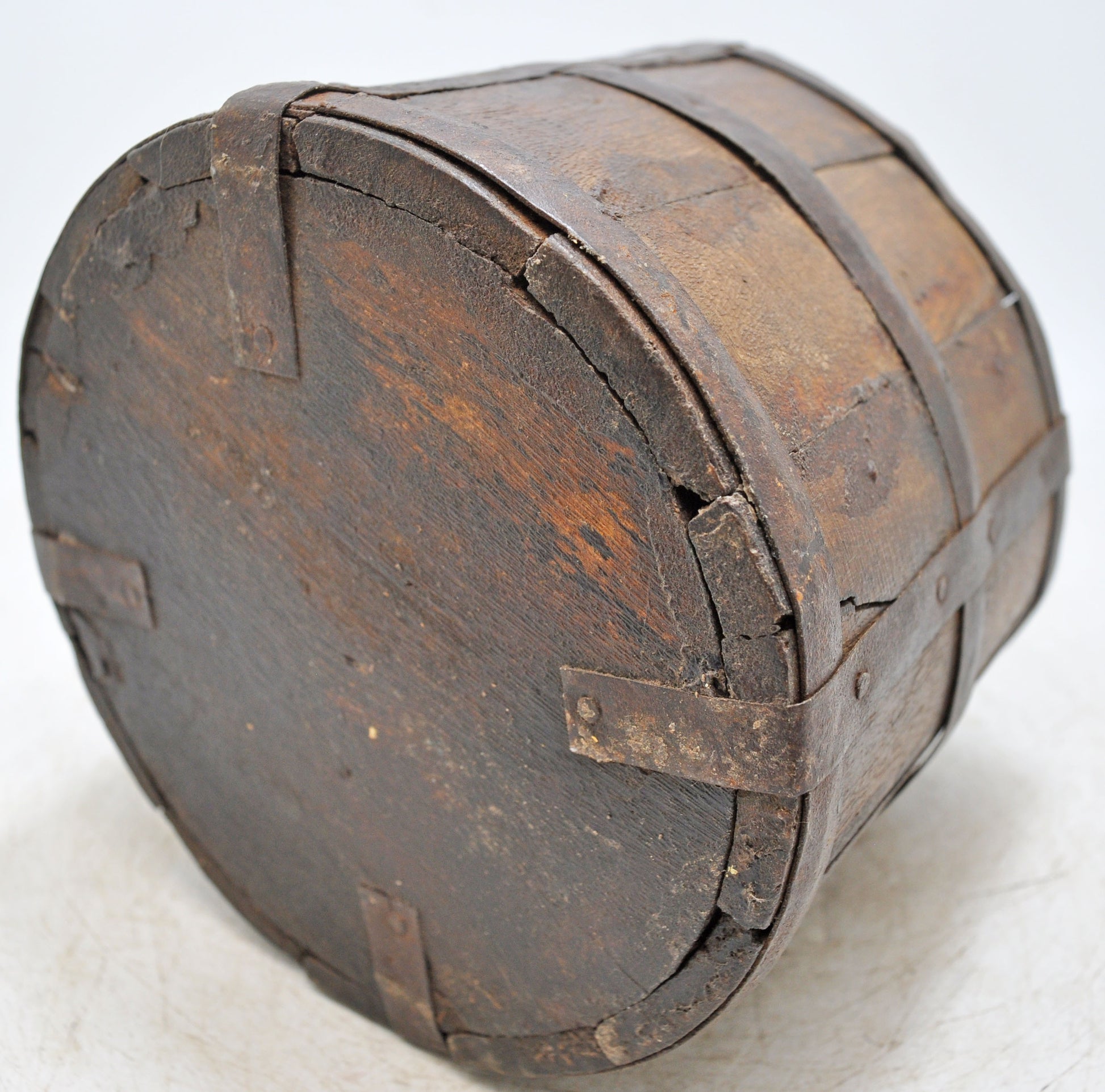 This is a nice looking old wooden pot, originally used for measuring grains. It is hand crafted in a nice shape. In good condition, with a rich patina, it is sure to add charm to your kitchen. This rustic measuring pot has a rich history, so be sure to include its story when sharing it.