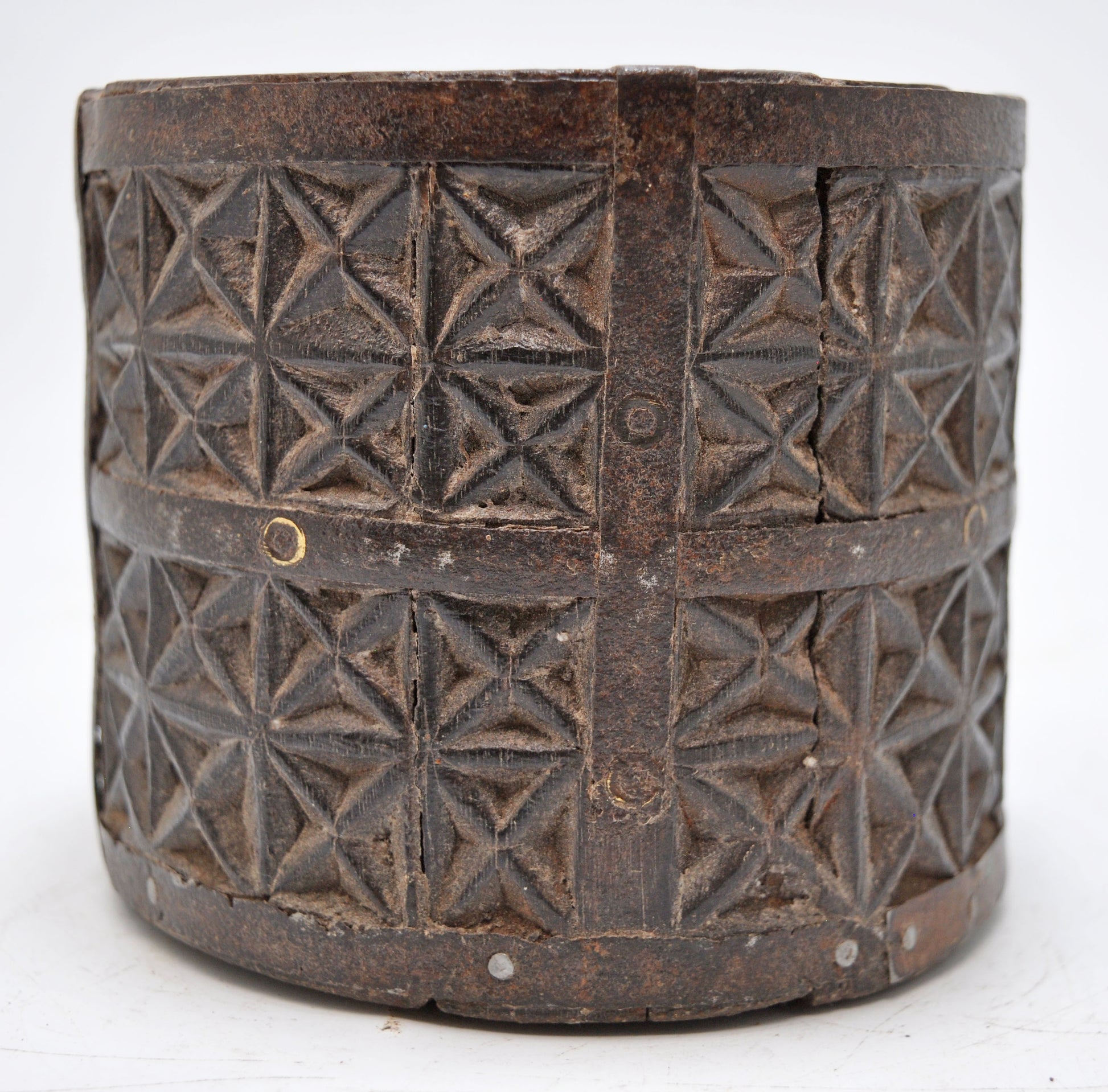 This exquisite vintage wooden grain measurement paili pot, meticulously hand-carved in India, reflects both craftsmanship and utility. Its elegant round form is designed for precise grain measurement, making it a functional piece steeped in tradition. The pot’s rich patina and well-preserved condition enhance its timeless appeal, adding a refined touch to any collector’s display or rustic décor. Perfect for those who appreciate cultural heritage and artisanal detail, this original old paili pot stands as a testament to skillful workmanship and enduring beauty.