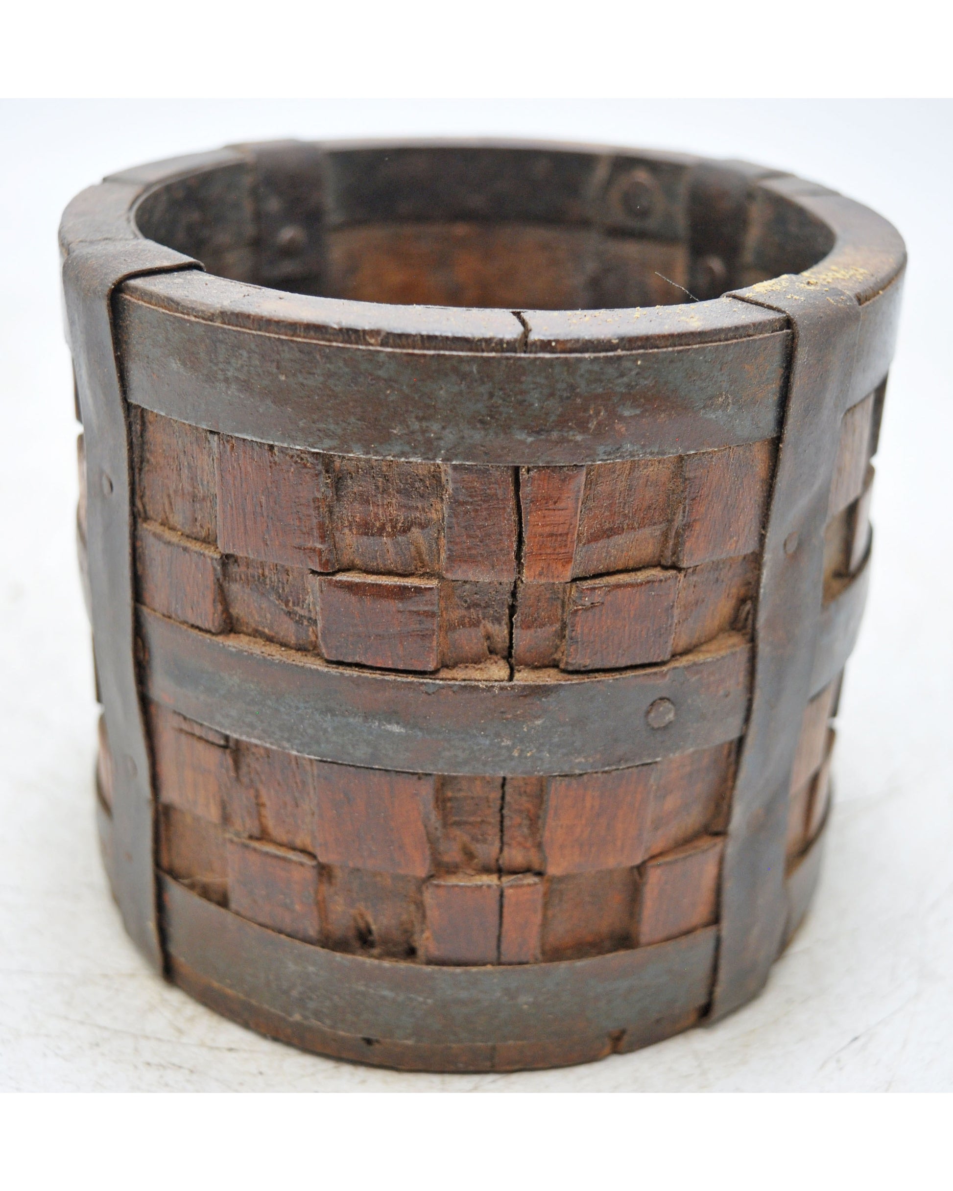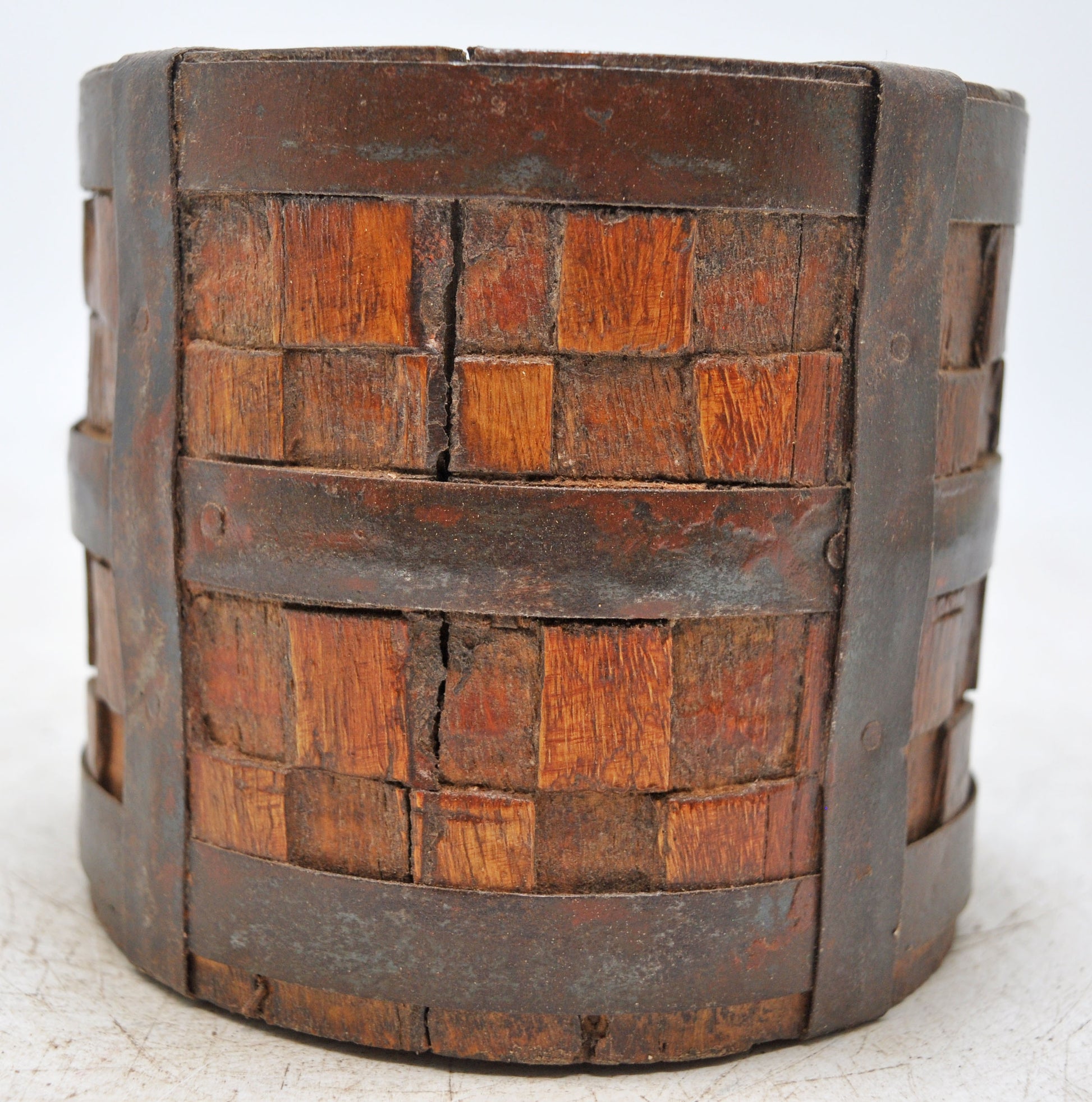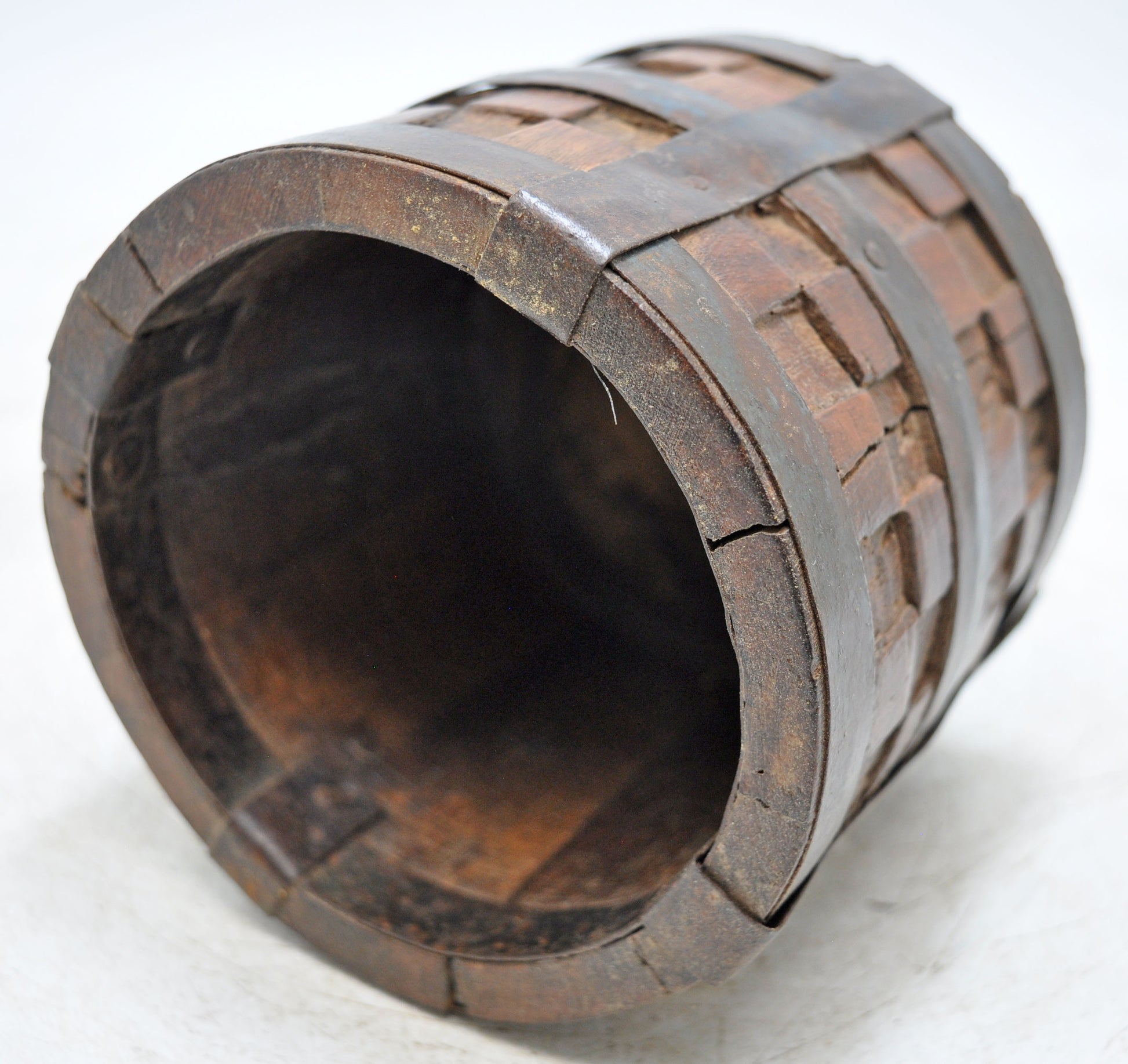 Vintage Wooden Grain Measurement Pot Original Old Hand Crafted Metal Fitted
