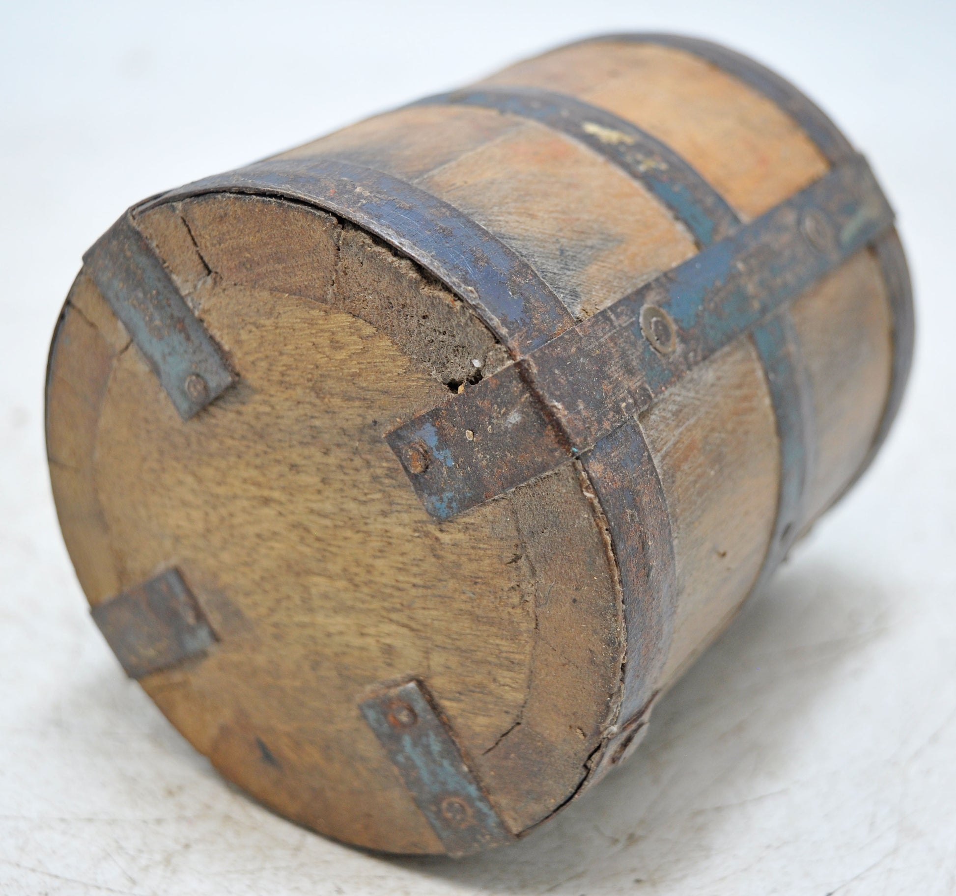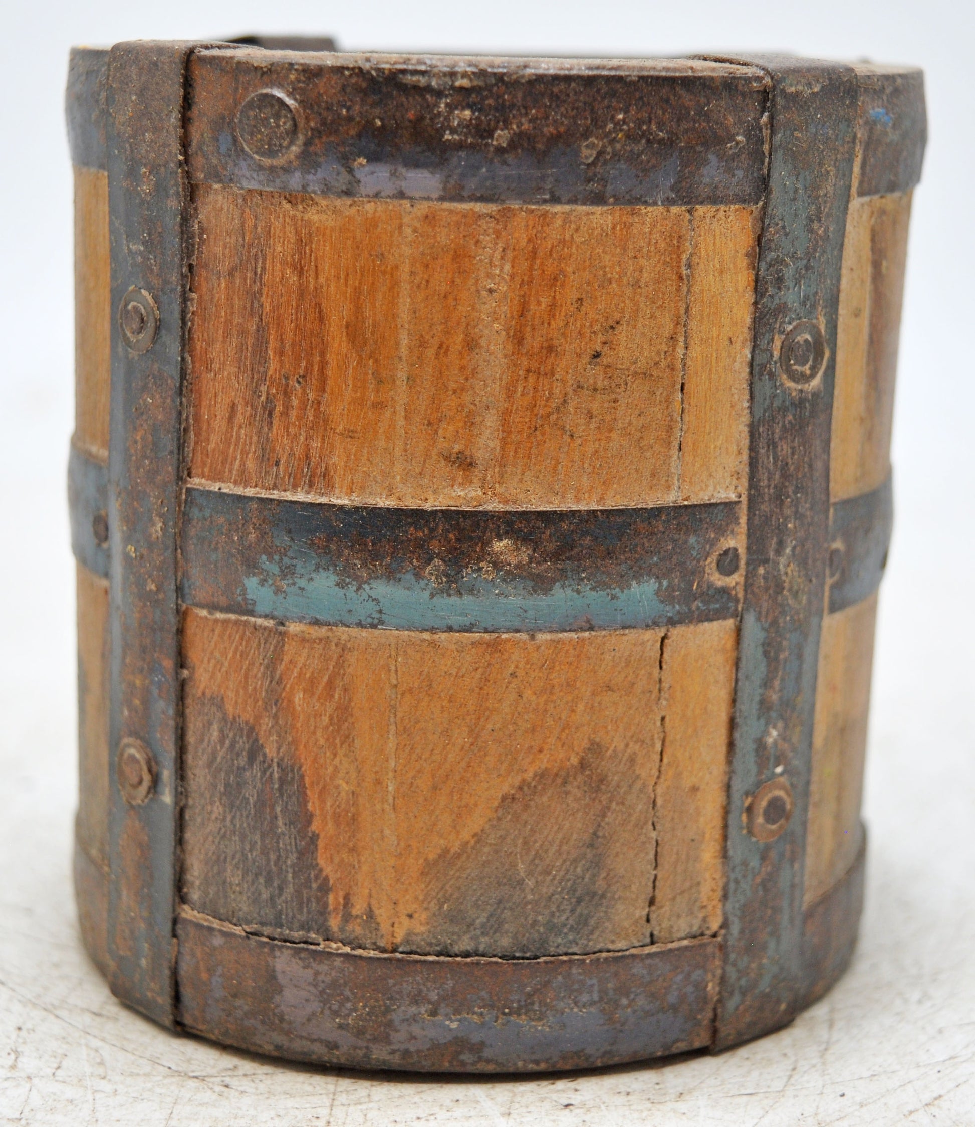 Vintage Wooden Grain Measurement Pot Original Old Hand Crafted Metal Fitted