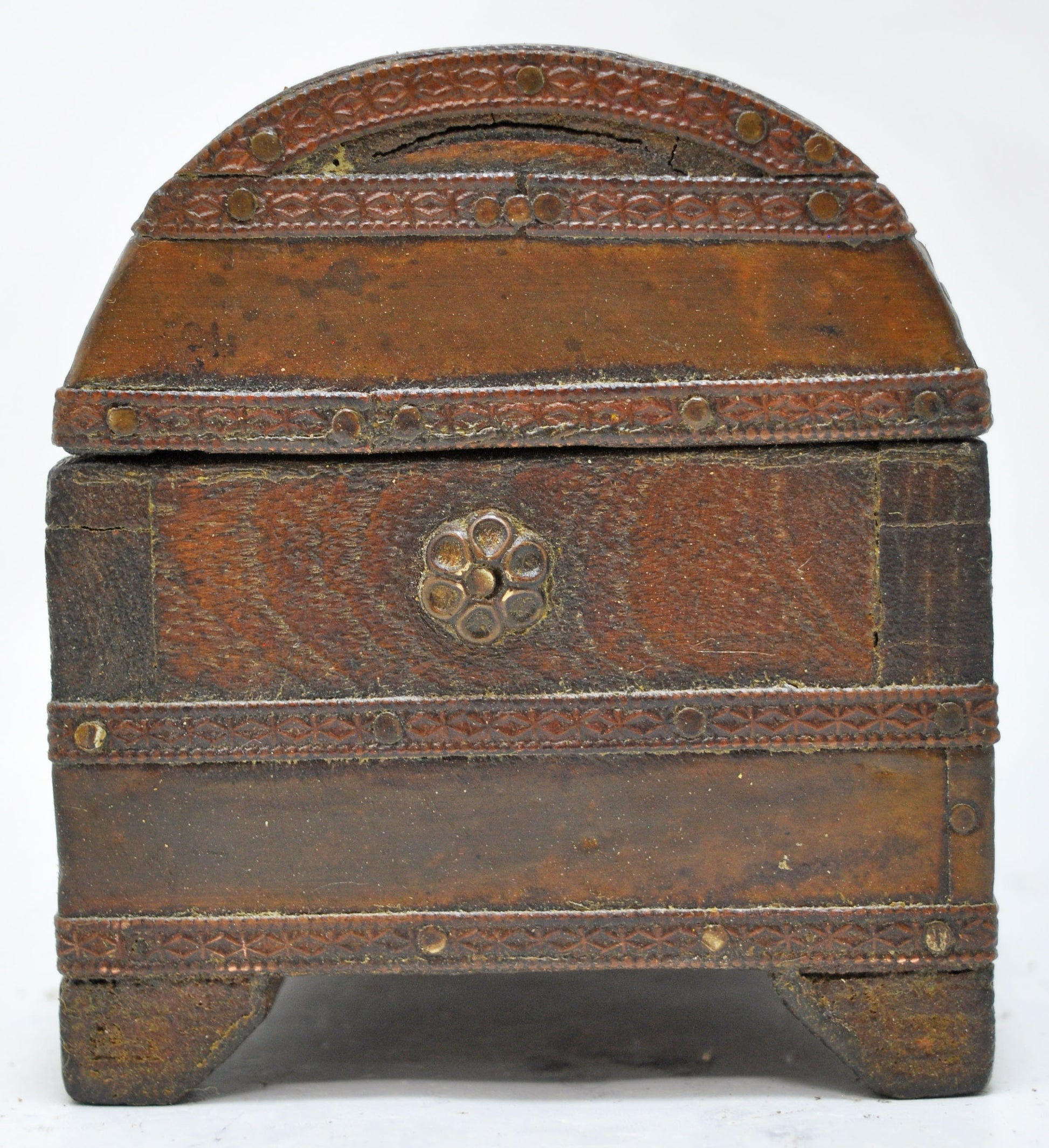 Vintage Wooden Half Round Jewellery Storage Box Original Old Hand Crafted Brass Fitted
