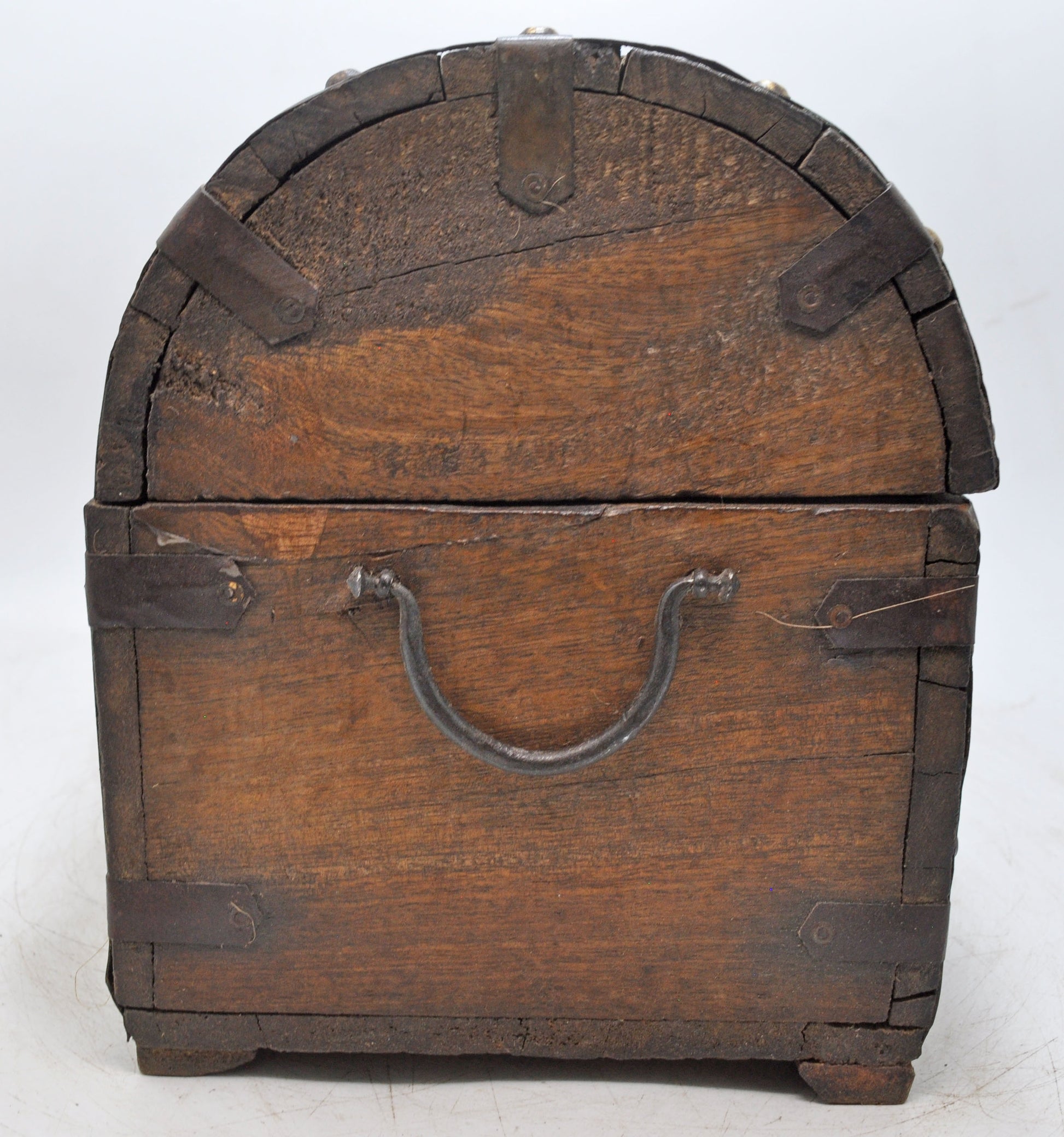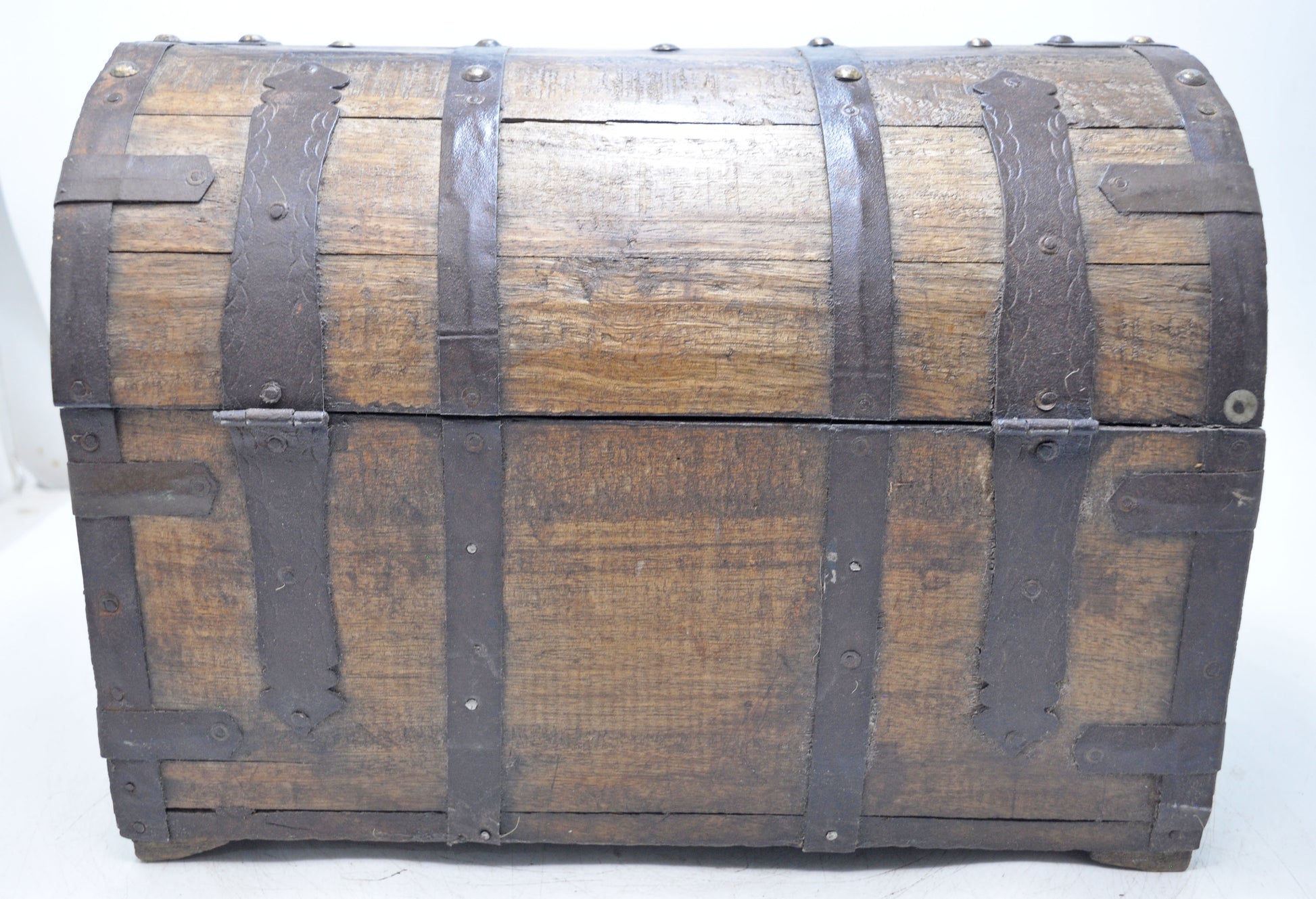 Vintage Wooden Half Round Storage Box Original Old Hand Crafted Metal Fitted
