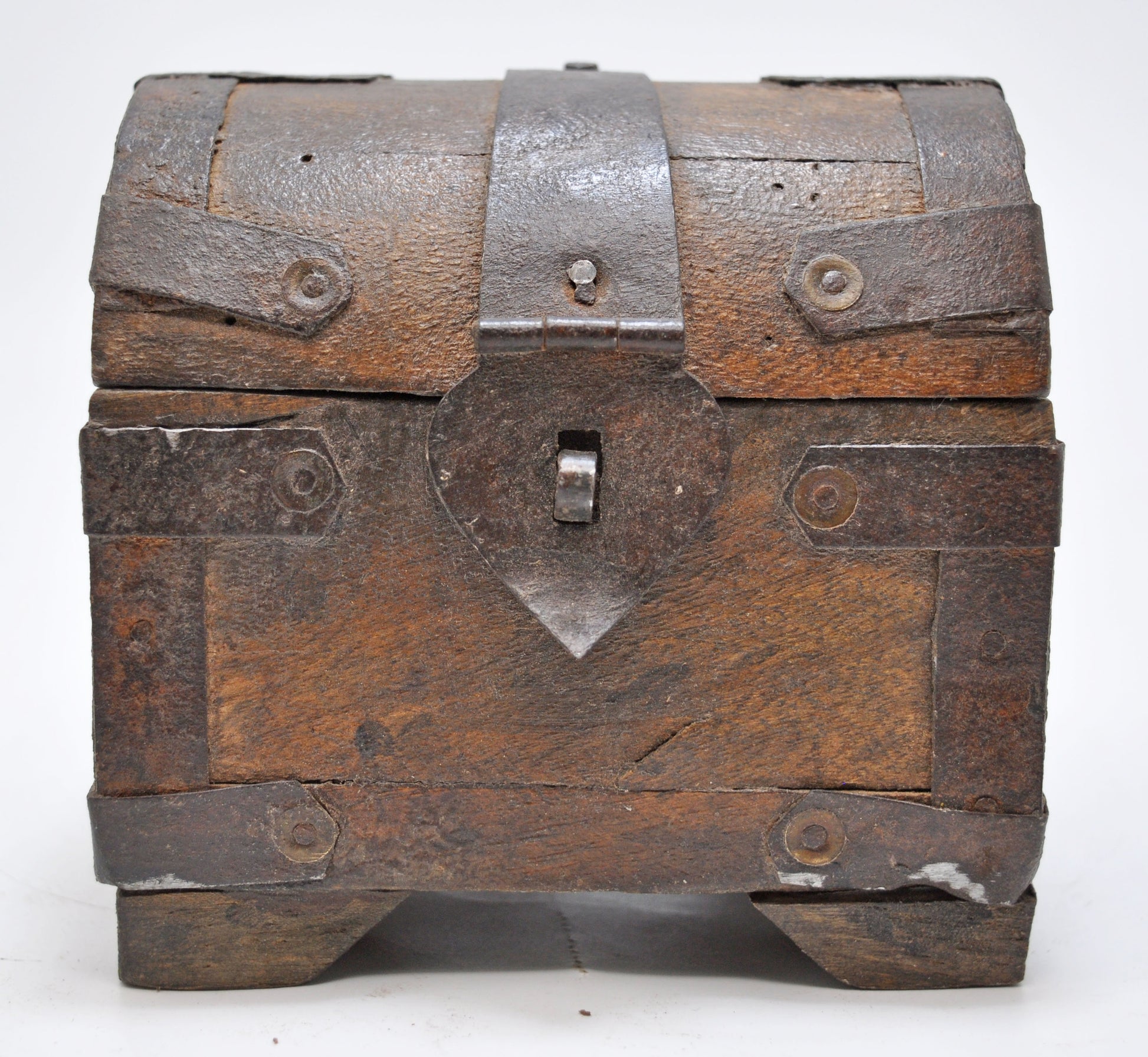 This small storage box showcases expert craftsmanship, expertly hand-crafted from authentic vintage wood sourced in India. Its distinctive half round top is complemented by sturdy metal fittings, combining elegance with durability. The wood’s natural patina—developed over years—reflects its rich heritage and adds a unique character that can enhance any room's aesthetic appeal. Ideal for storing small valuables or keepsakes, this piece balances functionality with an antique charm, making it a sophisticated addition to both modern and traditional interiors. Its well-preserved condition ensures it will serve as a lasting storage solution and decorative accent.