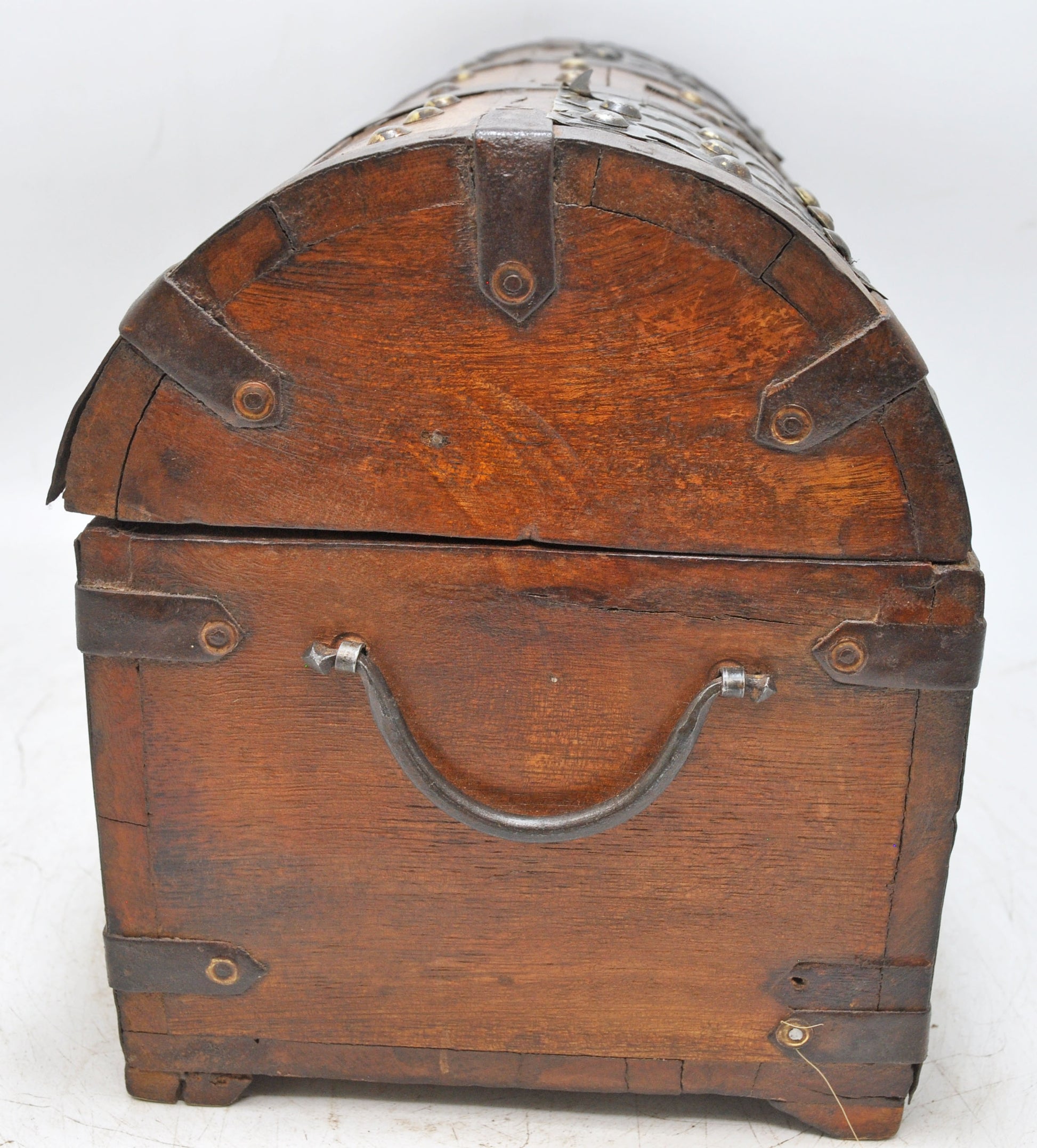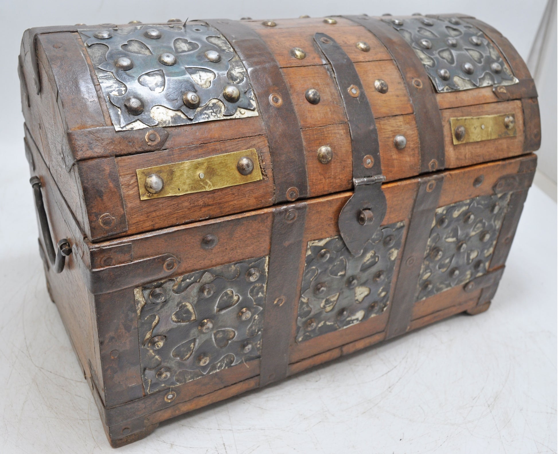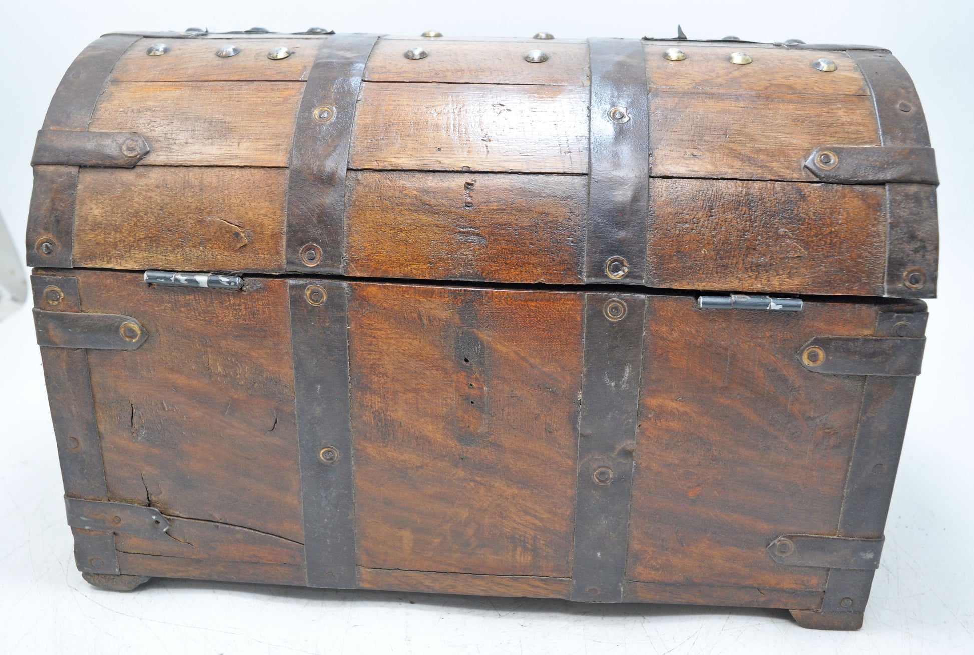 Vintage Wooden Half Round Top Storage Box Original Old Brass & Metal Fitted
