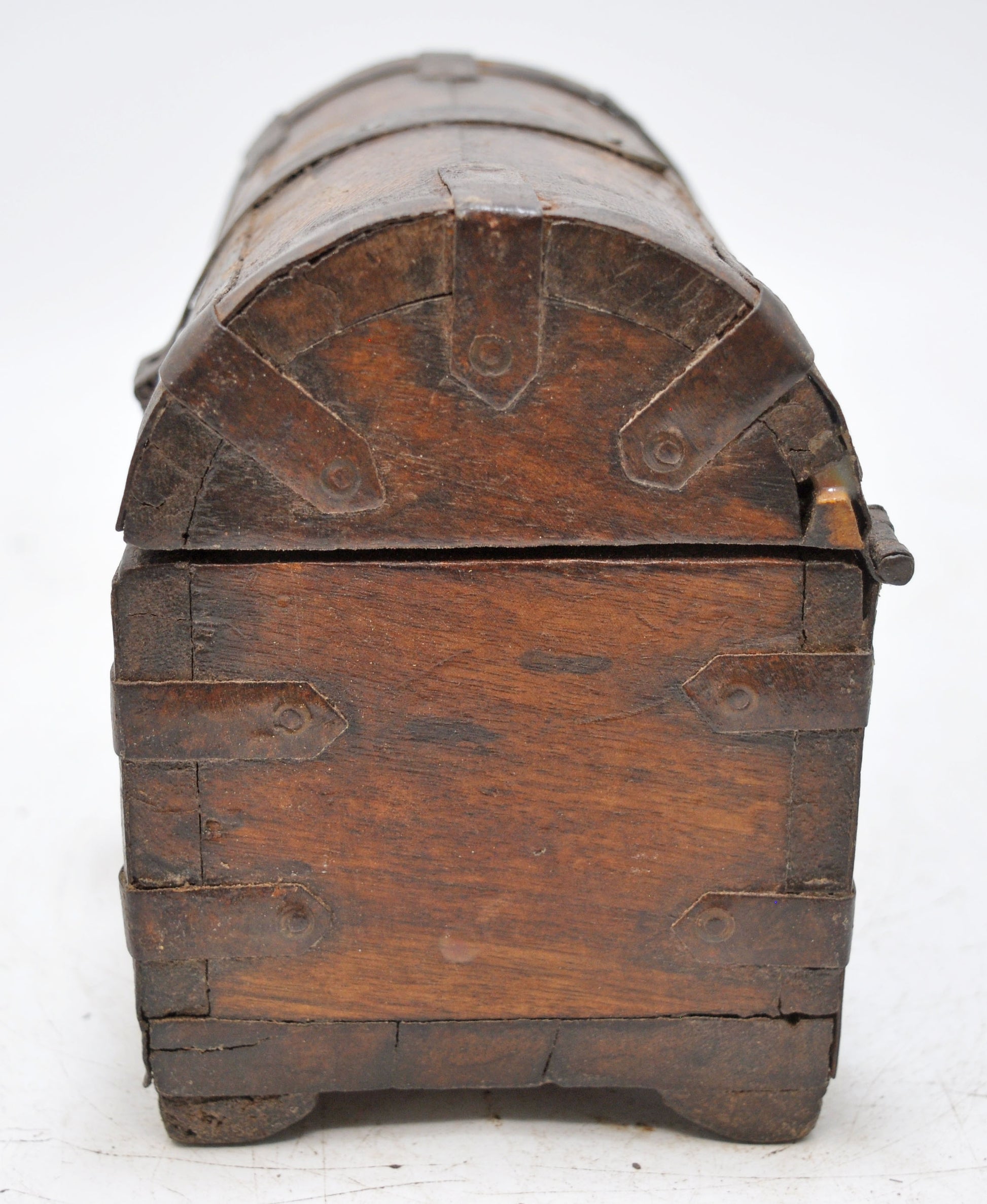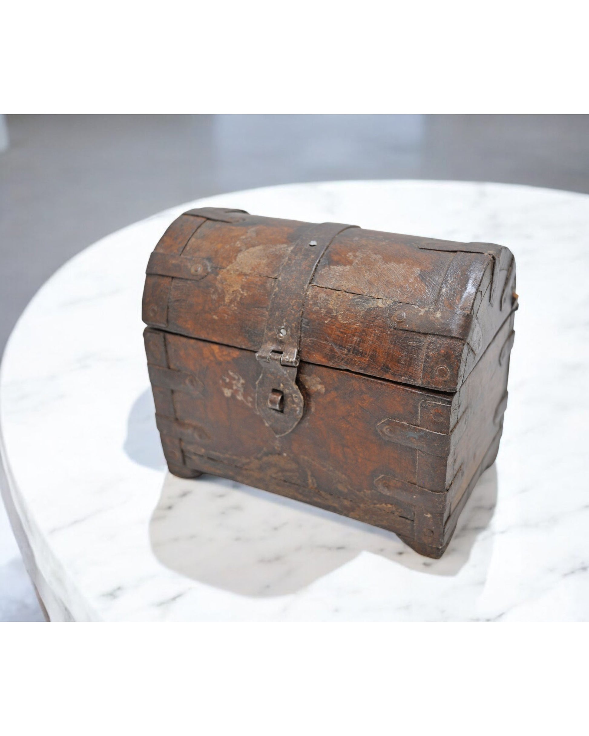 As an expert in the realm of wooden storage boxes, I present to you this Vintage Wooden Half Round Top Storage Box Original Old Hand Crafted. Hand-crafted in a unique shape and adorned with metal fittings, this box exudes a sense of history and a rich patina. Its origins can be traced back to India, making it a truly special piece.