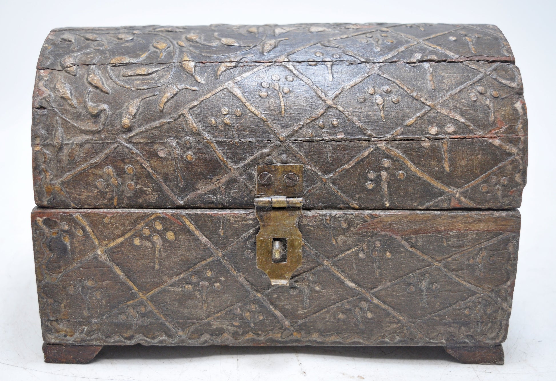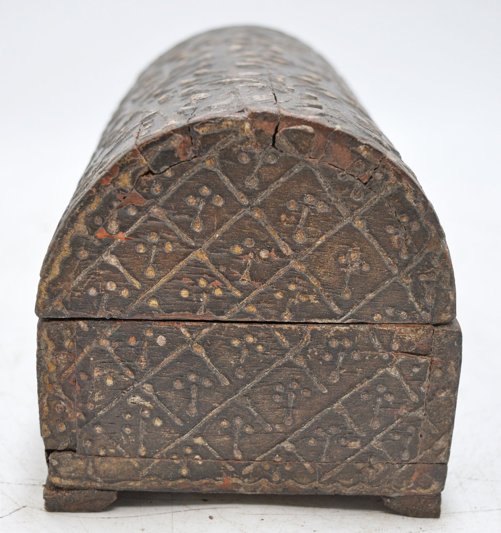 Vintage Wooden Half Round Top Storage Box Original Old Hand Crafted