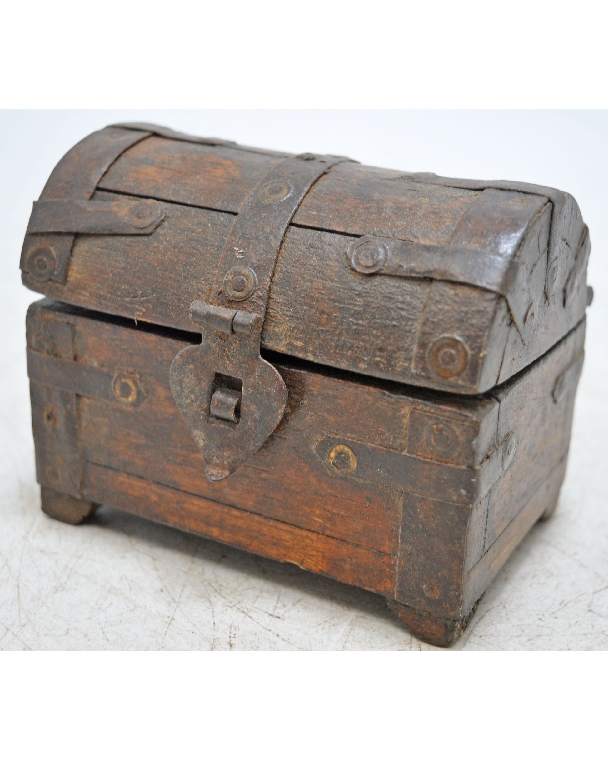 Vintage Wooden Half Round Top Storage Box Original Old Hand Crafted Metal Fitted