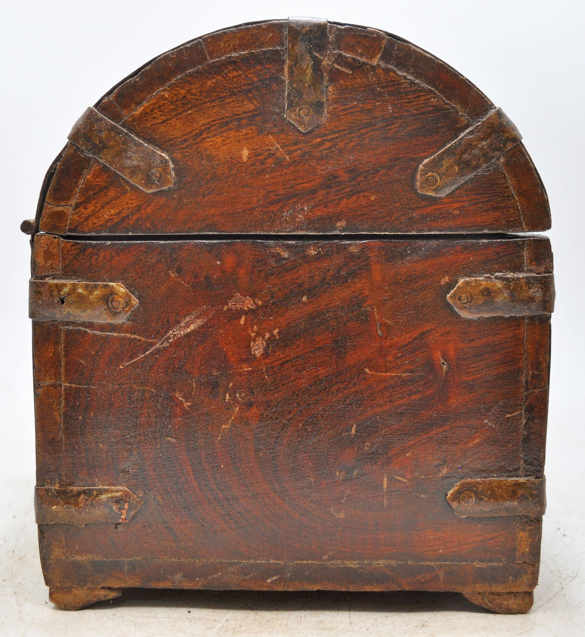 Vintage Wooden Half Round Top Storage Box Original Old Hand Crafted Metal Fitted