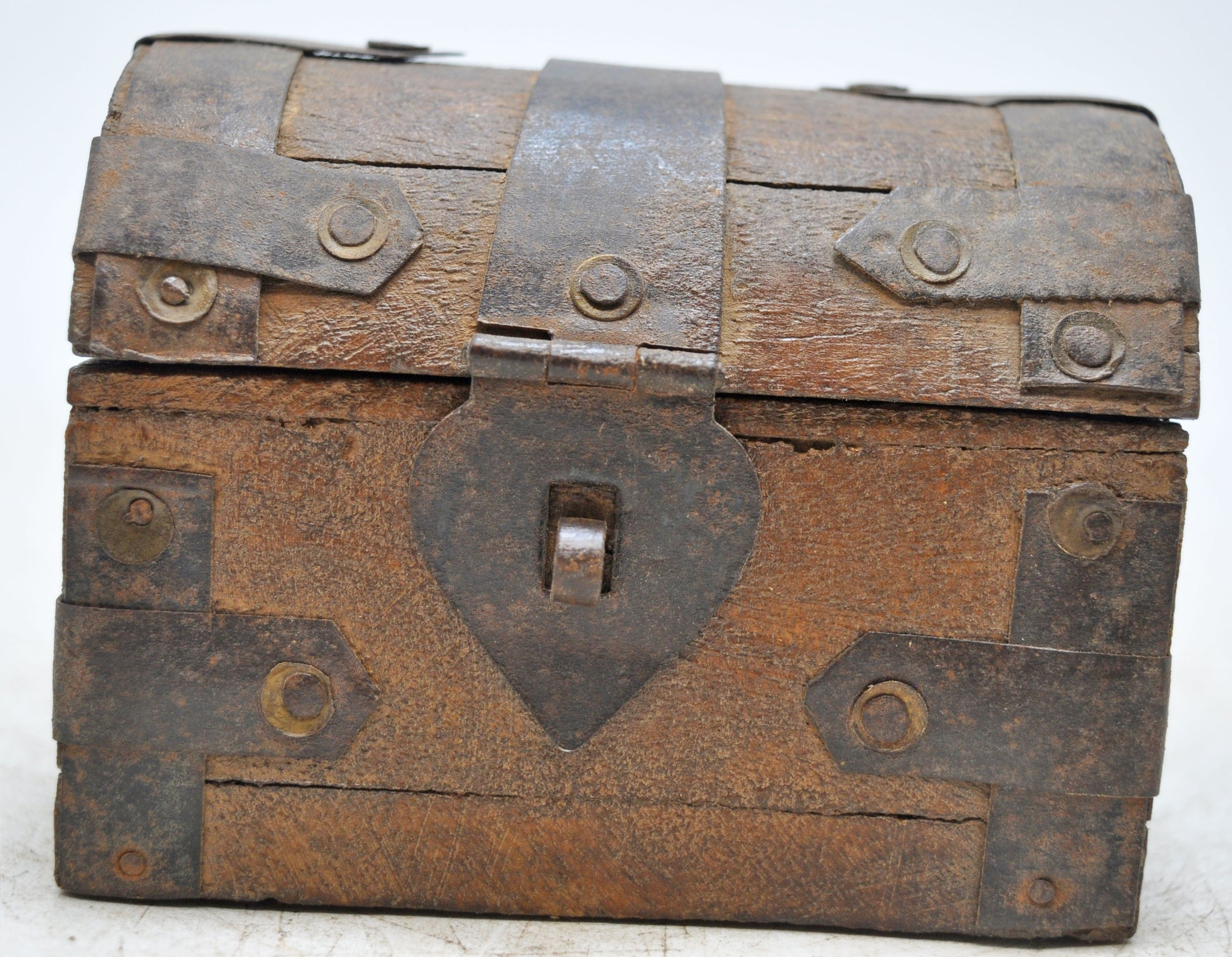 Vintage Wooden Half Round Top Storage Box Original Old Hand Crafted Metal Fitted