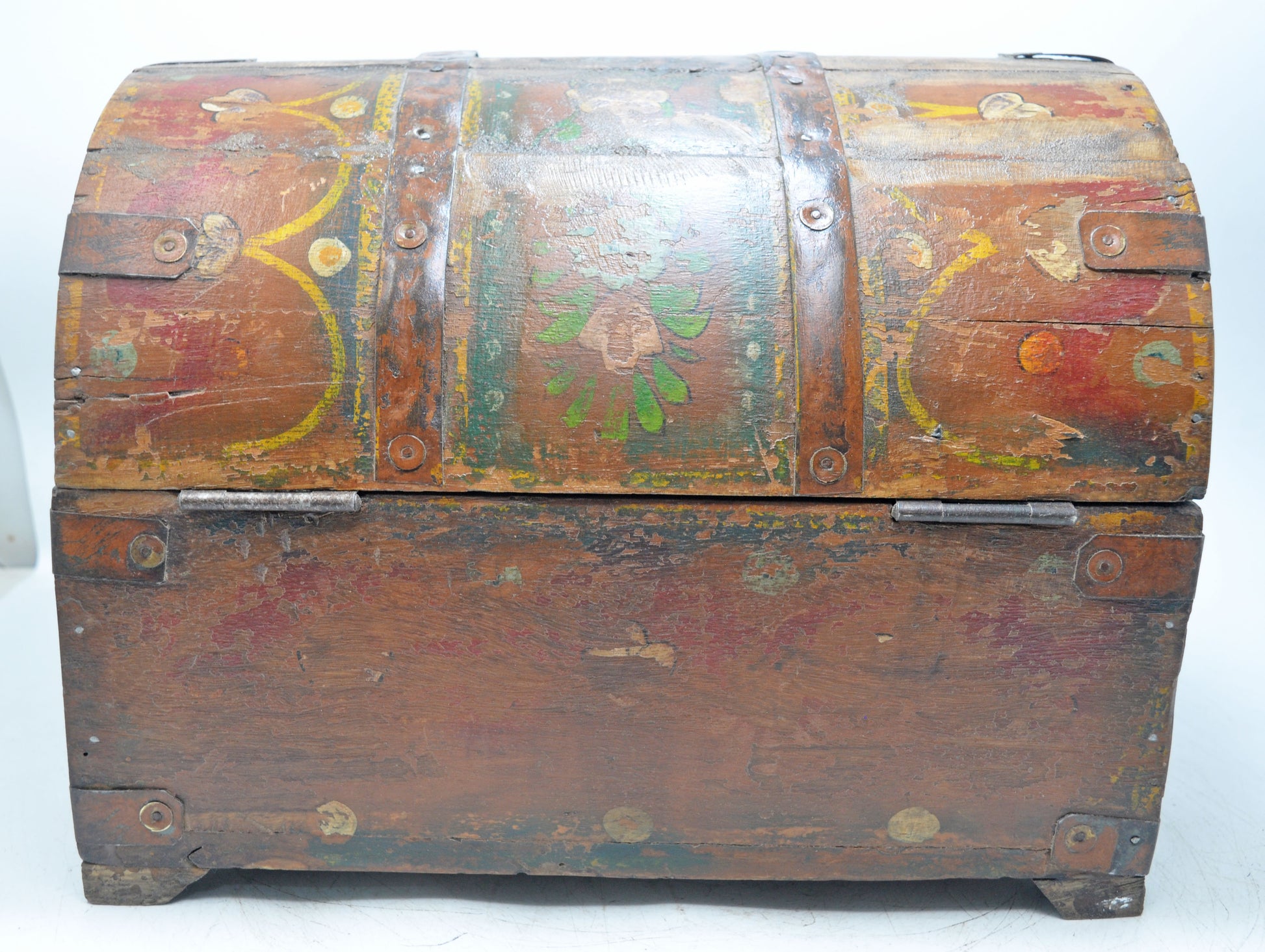 Vintage Wooden Half Round Top Storage Box Original Old Hand Crafted Painted