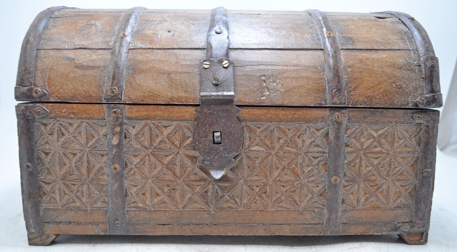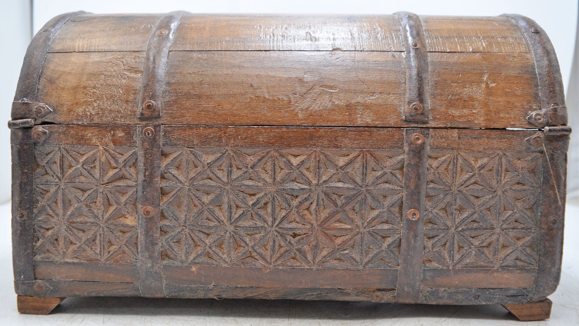 Vintage Wooden Half Round Top Storage Chest Box Original Old Hand Carved