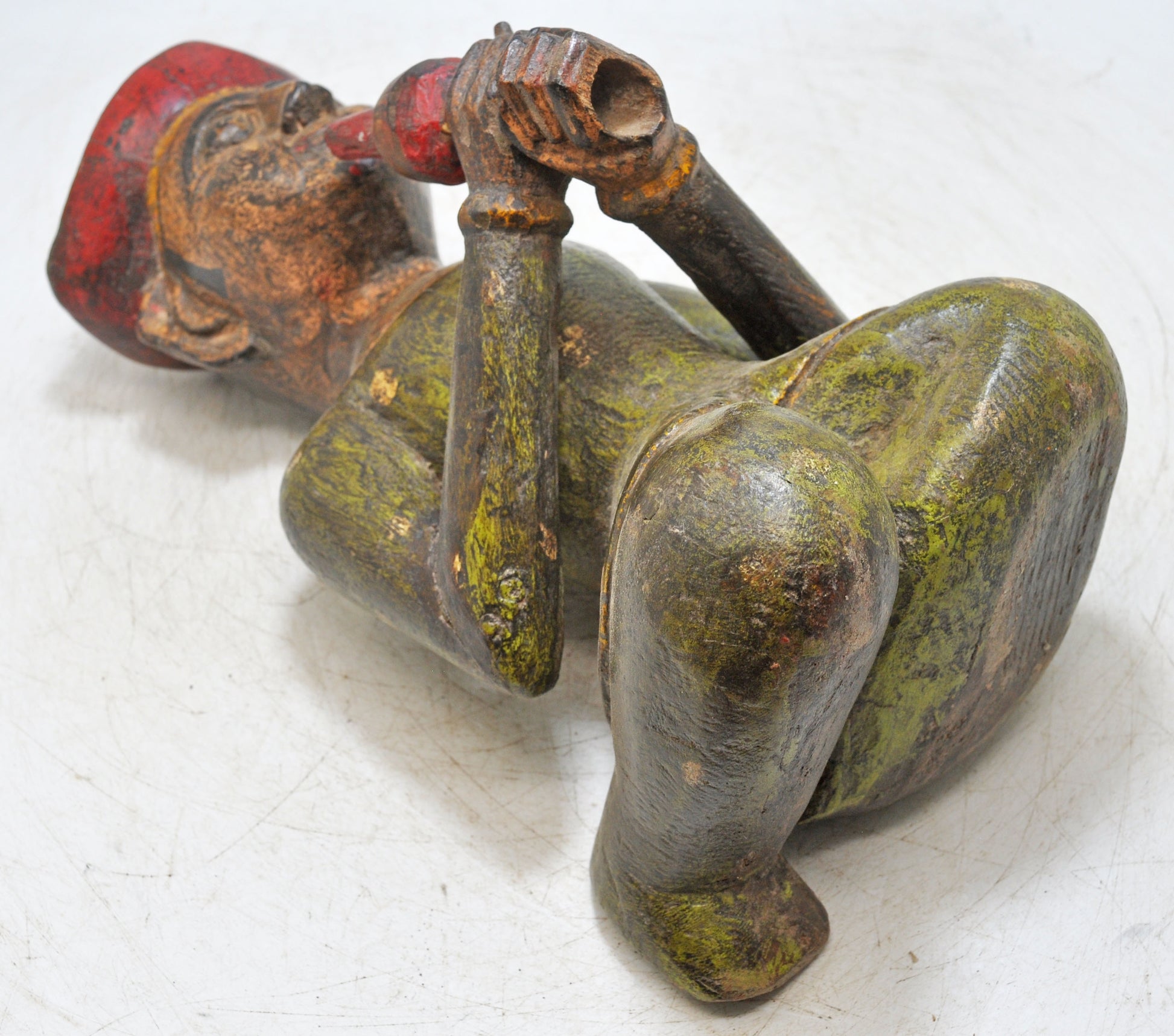 Vintage Wooden Large Musician Man Figurine Original Old Hand Carved Painted