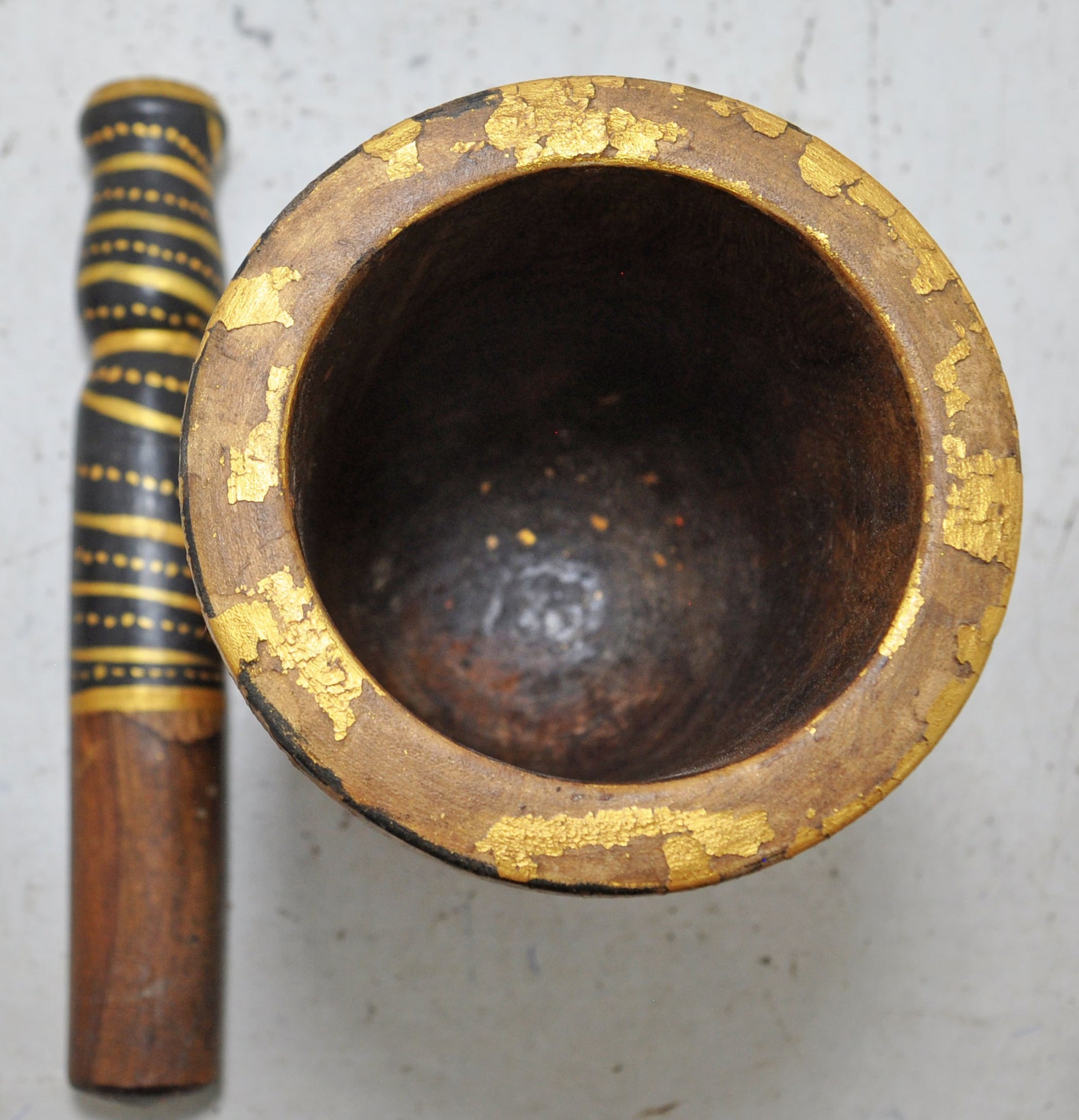 Vintage Wooden Motar and Pestle Spice Grinder Original Old Hand Carved New Painted