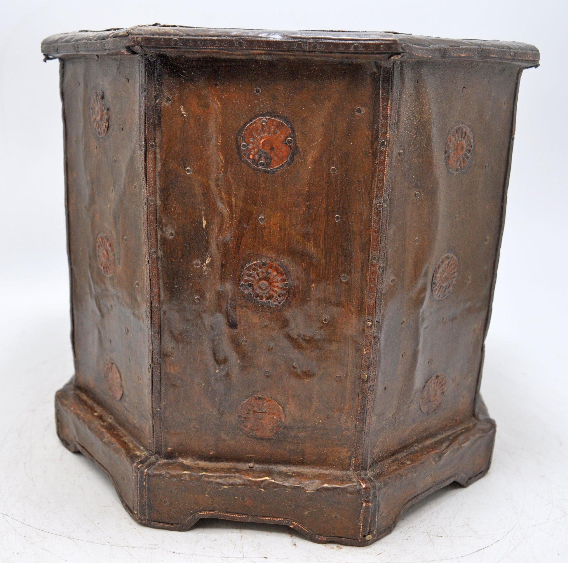 Vintage Wooden Octagonal Planter Pot Original Old Hand Crafted Brass Fitted