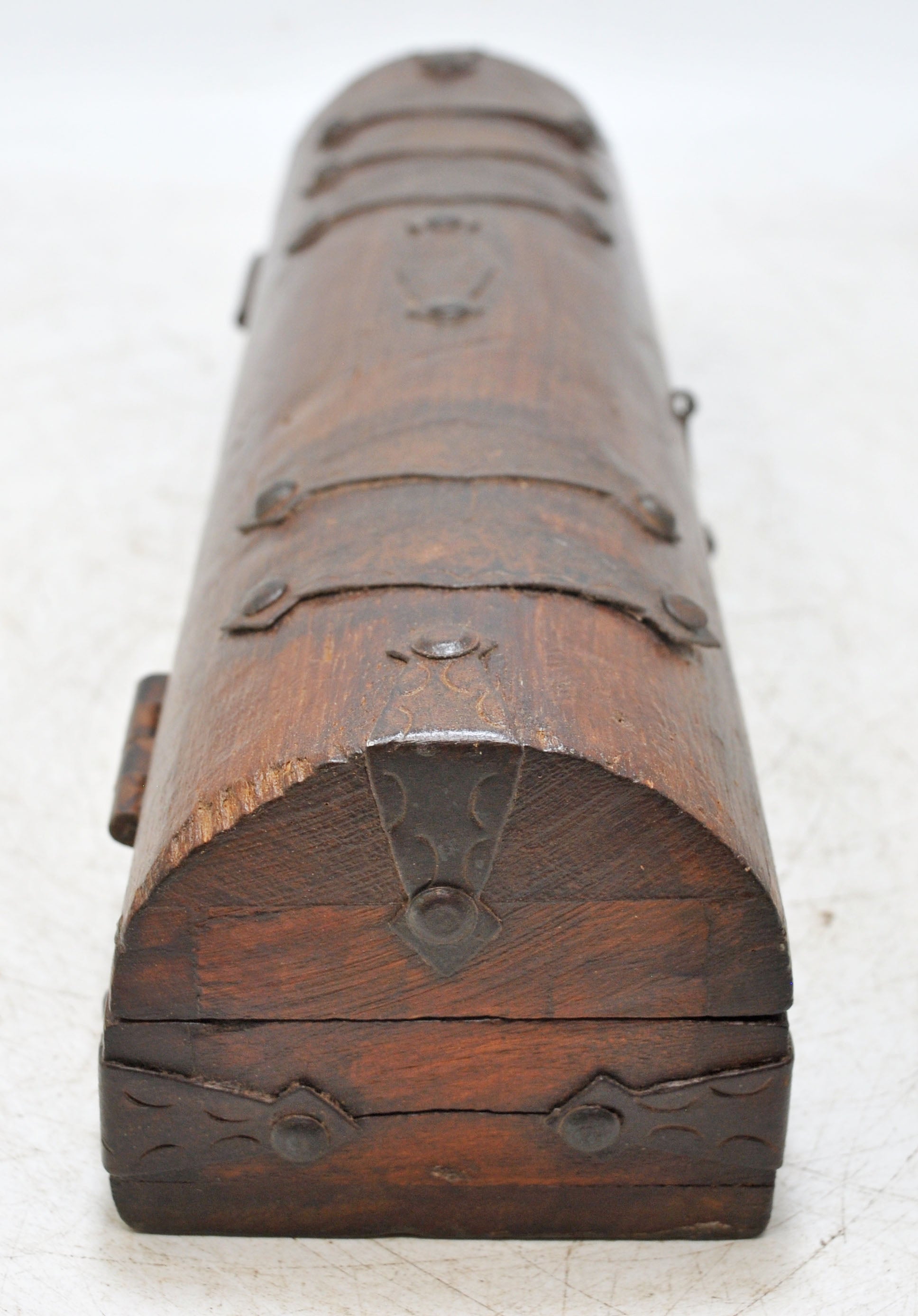 A well-preserved old wooden stationery box, shaped by hand with a straightforward design that makes it ideal for pencils and small writing tools. Its surface has matured into a rich patina that enhances its nostalgic look. The box stays strong and fully usable, balancing decorative beauty with everyday practicality. An appealing example of Indian vintage craftsmanship.