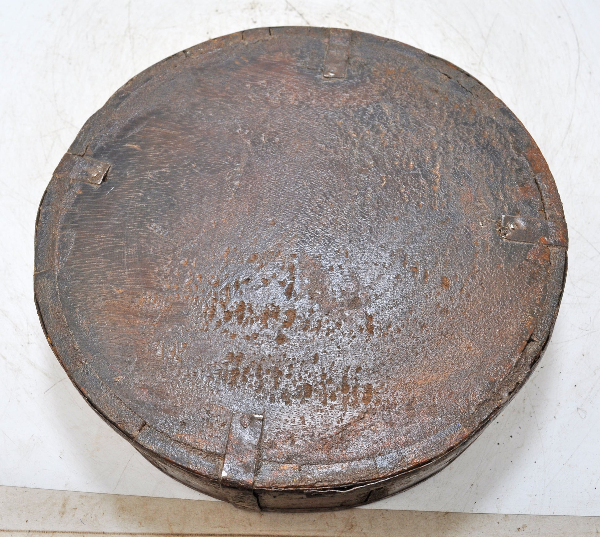 Vintage Wooden Round Basket Original Old Hand Crafted Painted